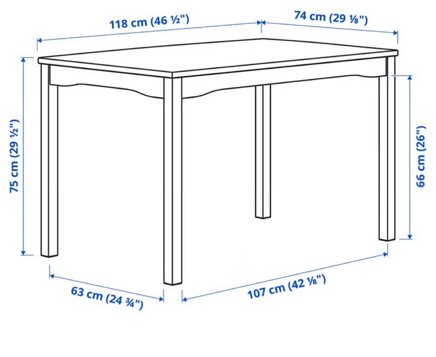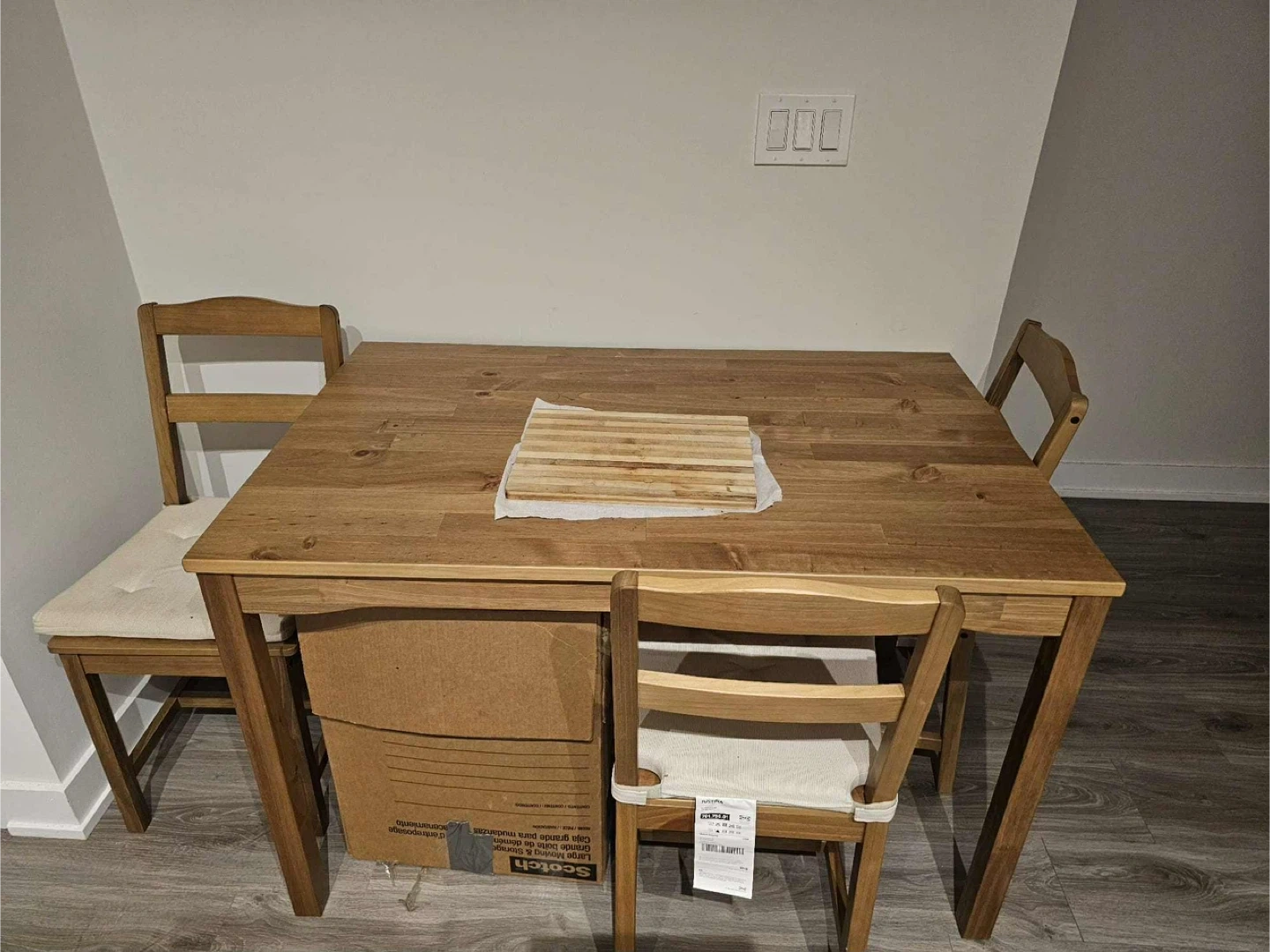Selling an IKEA INGATORP extendable table with INGOLF chairs. This set features a beautiful antique stain pine finish. The table dimensions are 118 cm x 74 cm (46 1/2" x 29 1/8"). The chairs are 87 cm (34 1/4") tall. Great for small spaces and gatherings! Located 4130 Parkside Village Dr, Mississauga, ON L5B 3M8