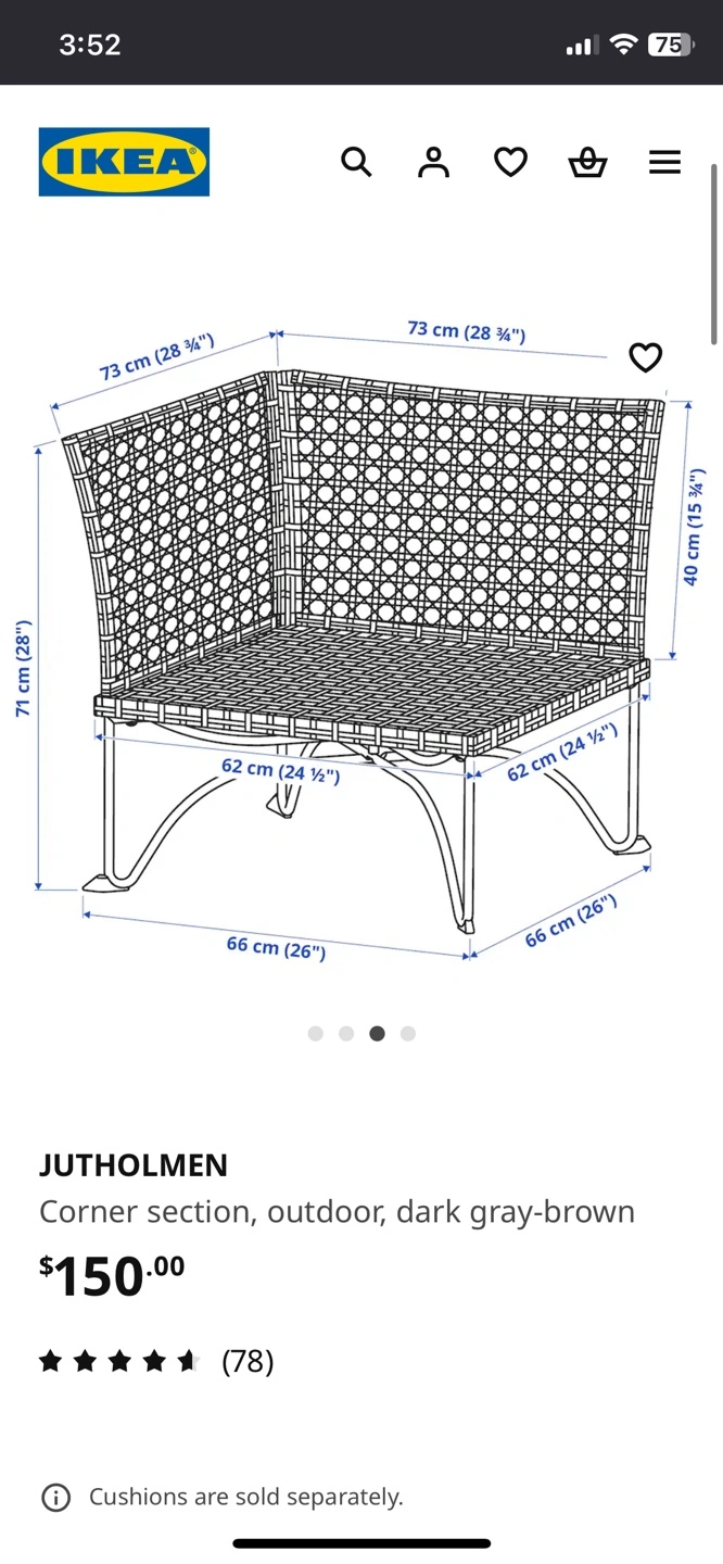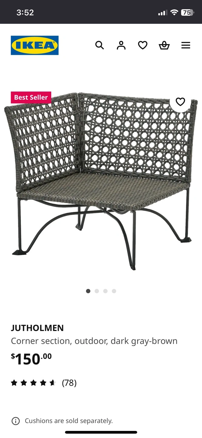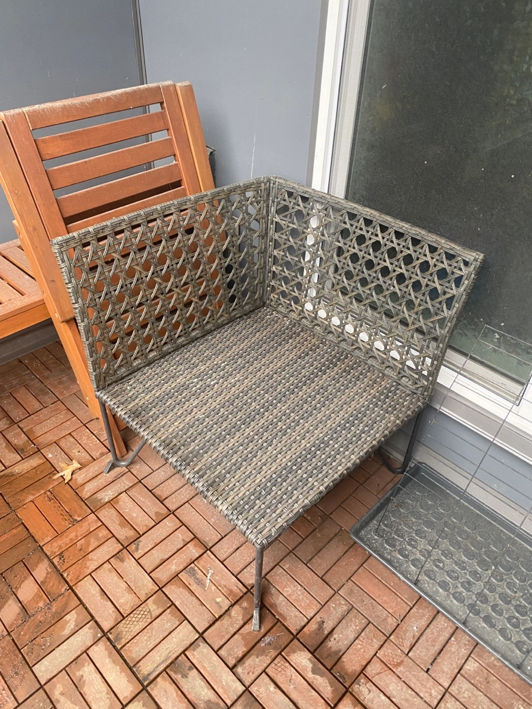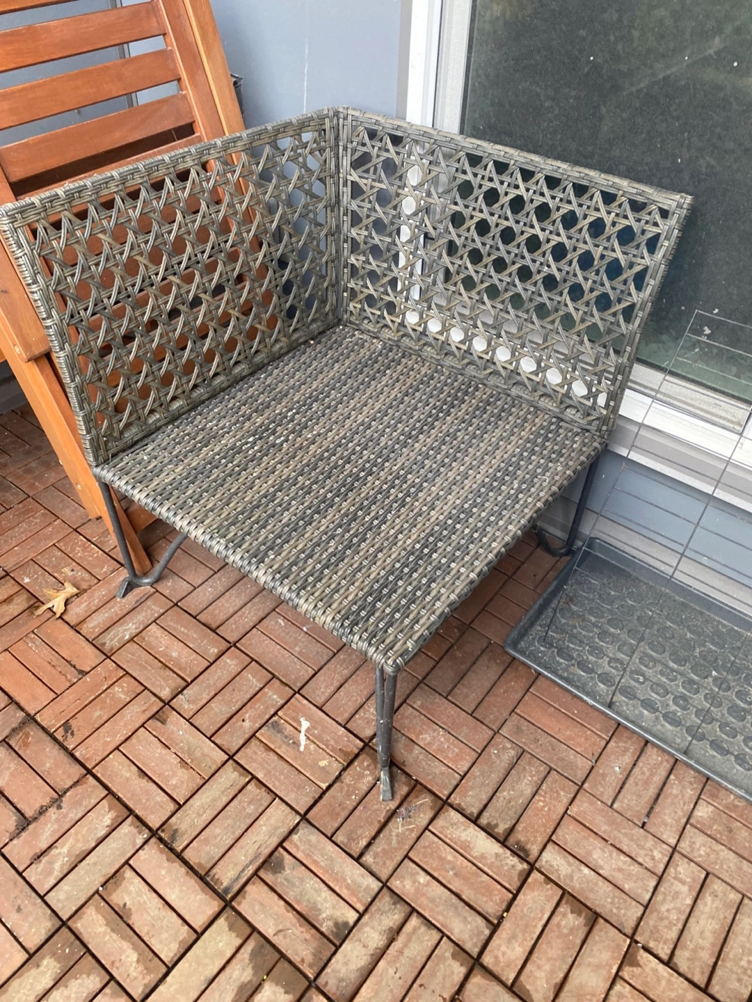 65Dark gray-brown wicker outdoor corner chair. Metal frame. Very comfortable as is or you could add cushions. Very durable. Can easily hold 400lbs of weight. Easy to keep clean. We are moving so need to get rid of. Pick up only at King George and 132nd St. Can bring tools to disassemble and fit in car or bring truck to leave assembled.