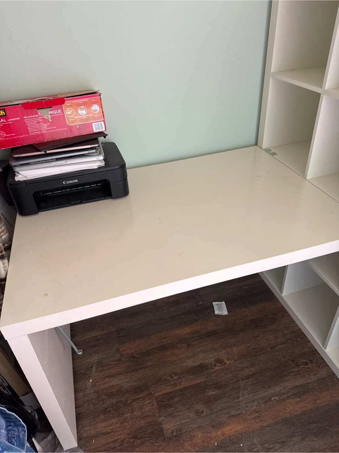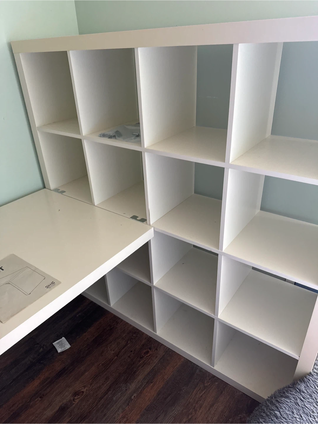 Selling an IKEA Kallax/Lagkapten desk combination in white. Dimensions: 147x159x147 cm (57 7/8x62 5/8x57 5/8 ") Originally bought for $264. This is a great setup for a home office or study space!
