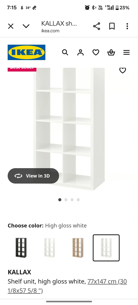 104Selling an IKEA Kallax shelf unit in high gloss white. It's in great shape and ready for a new home! The dimensions are 77x147 cm (30 1/8x57 5/8 ") original price almost $160