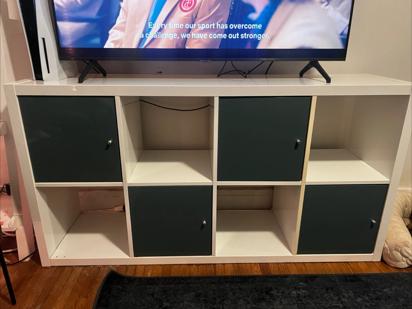 151**priced to go! ***pick up only!! Looking to sell my IKEA Kallax shelf unit! It’s in great shape and features a mix of open shelving and dark blue door inserts. Perfect for adding storage and style to any room! Message me if you're interested