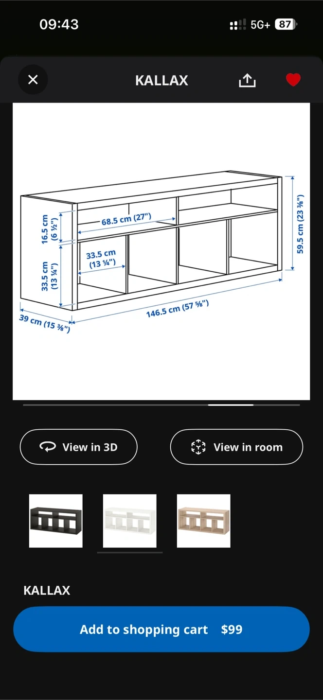Selling a white IKEA Kallax shelf unit. It's in great shape and ready for a new home! The dimensions are 146.5 cm (57 3/4") wide, 39 cm (15 3/8") deep, and 59.5 cm (23 3/8") high. Perfect for organizing your space!