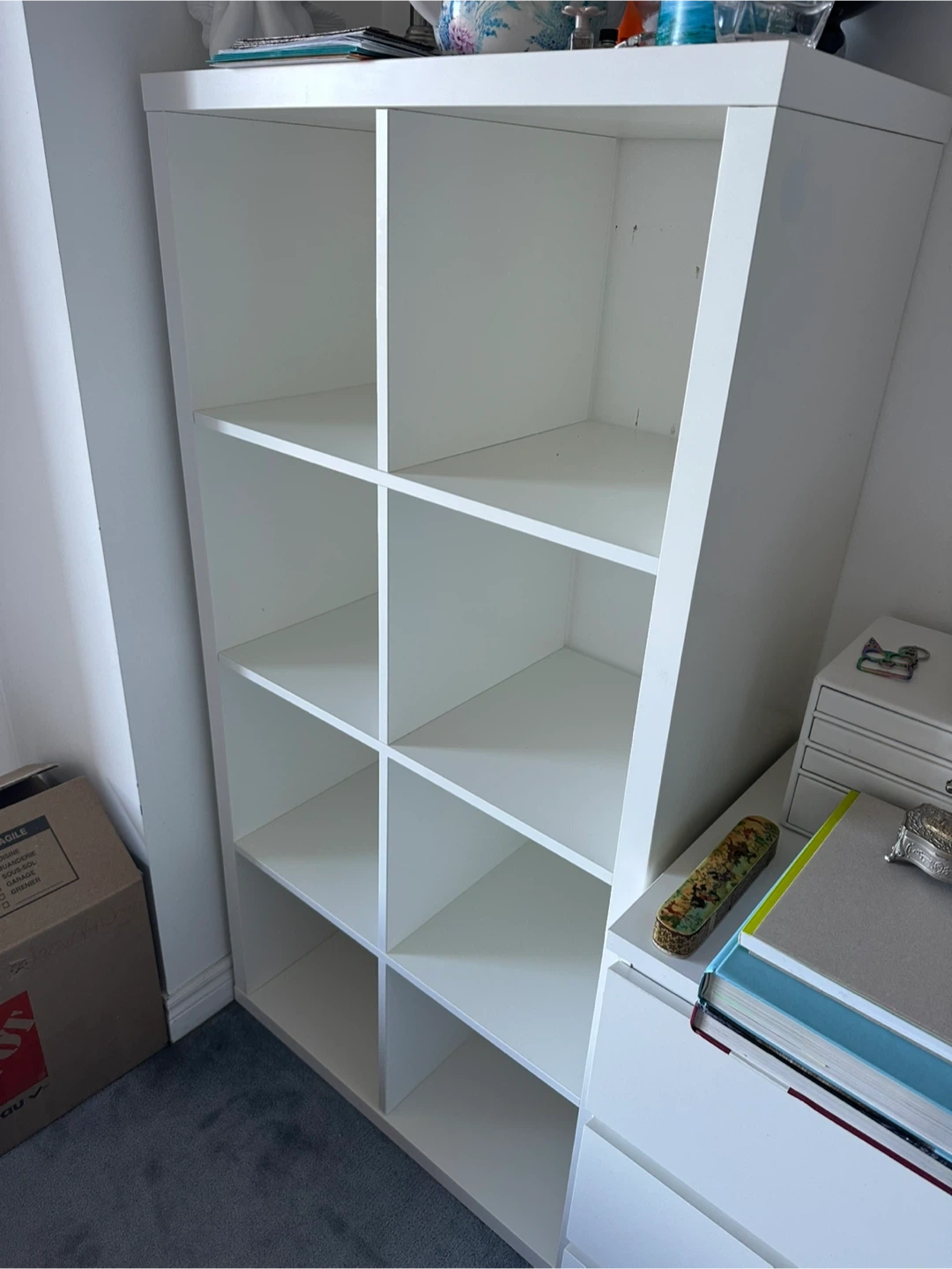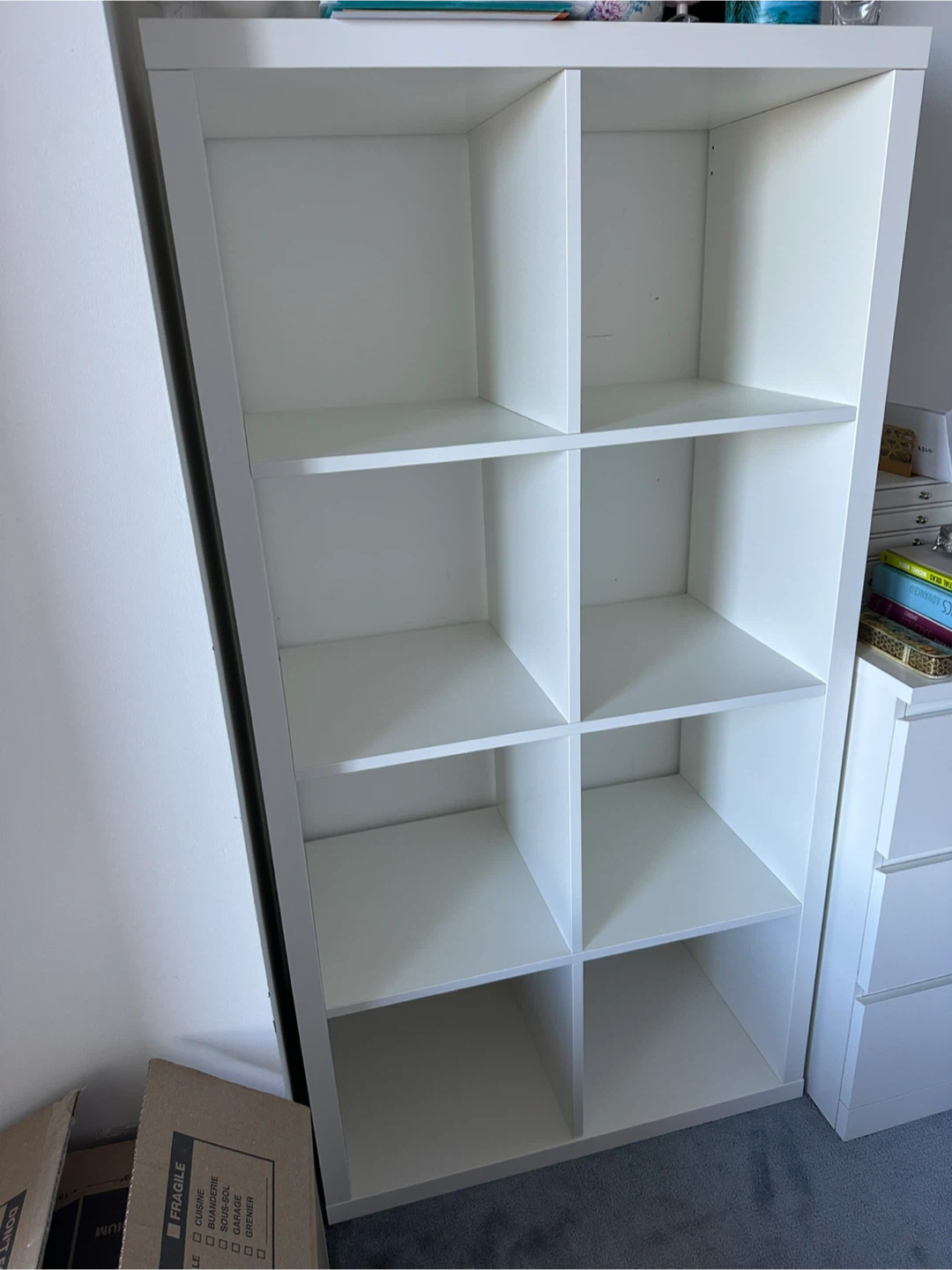 26Selling a white IKEA Kallax shelf unit in great condition! This versatile shelving unit can be used horizontally or vertically, making it perfect for any space. It's a great way to organize books, toys, or display your favourite items. It's clean and ready for a new home