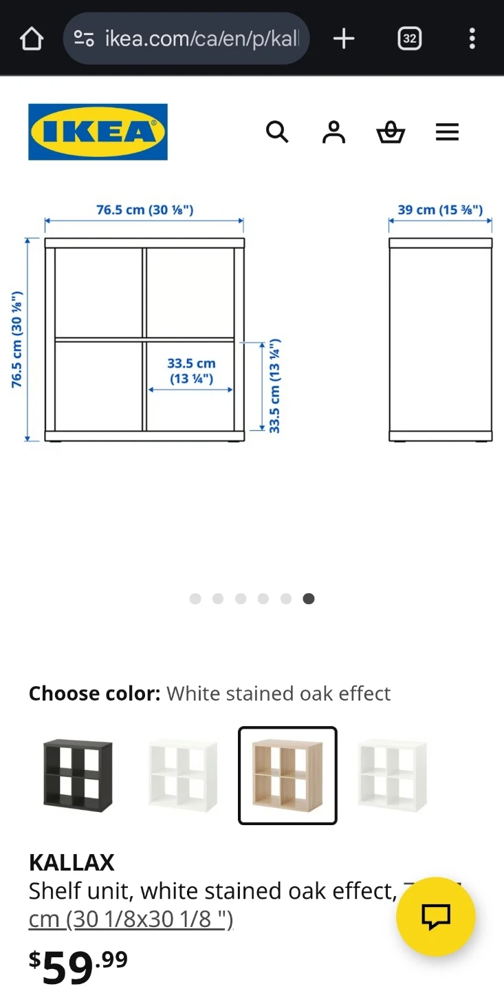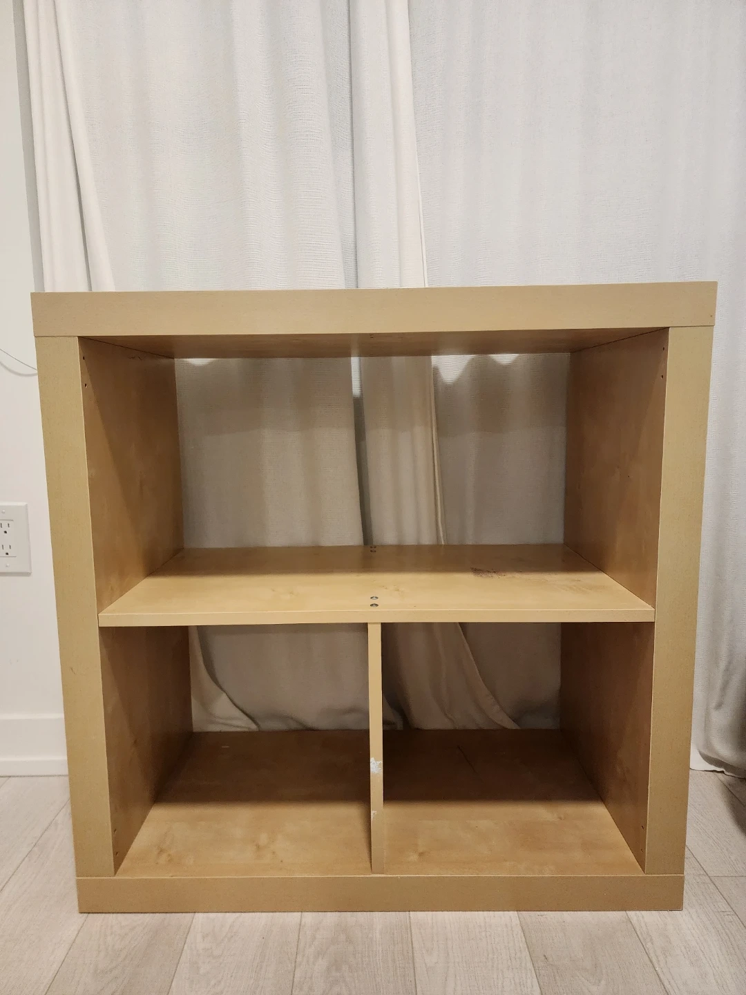 40Selling an IKEA Kallax shelf unit in the white stained oak effect colour. It's a great piece for organizing books, toys, or displaying your favourite items. The dimensions are 76.5 cm (30 1/8") x 76.5 cm (30 1/8") x 39 cm (15 1/4").