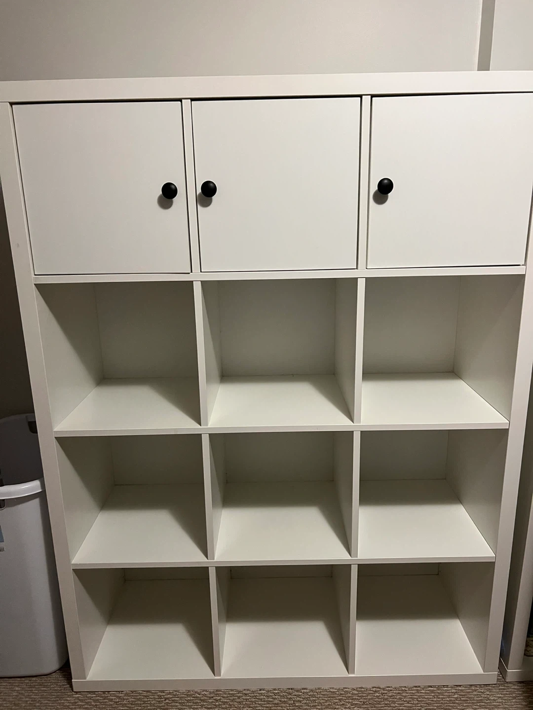 15Selling a white shelf unit that's perfect for organizing your space! It features a combination of open shelving and closed storage with doors. Great for decluttering any room in your home Priced to sell Pick up asap Yonge and Wellington