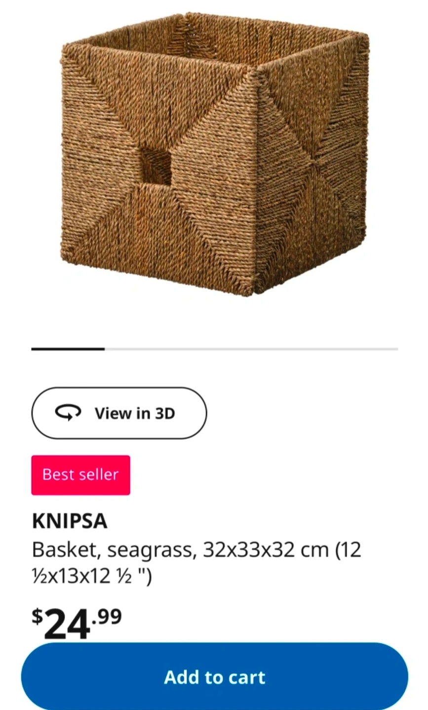 421Selling 4 IKEA KNIPSA basket made of seagrass! It's in great shape and ready to add some natural texture to your space. The dimensions are 32x33x32 cm (12 ½x13x12 ½ ") $15each / $35all