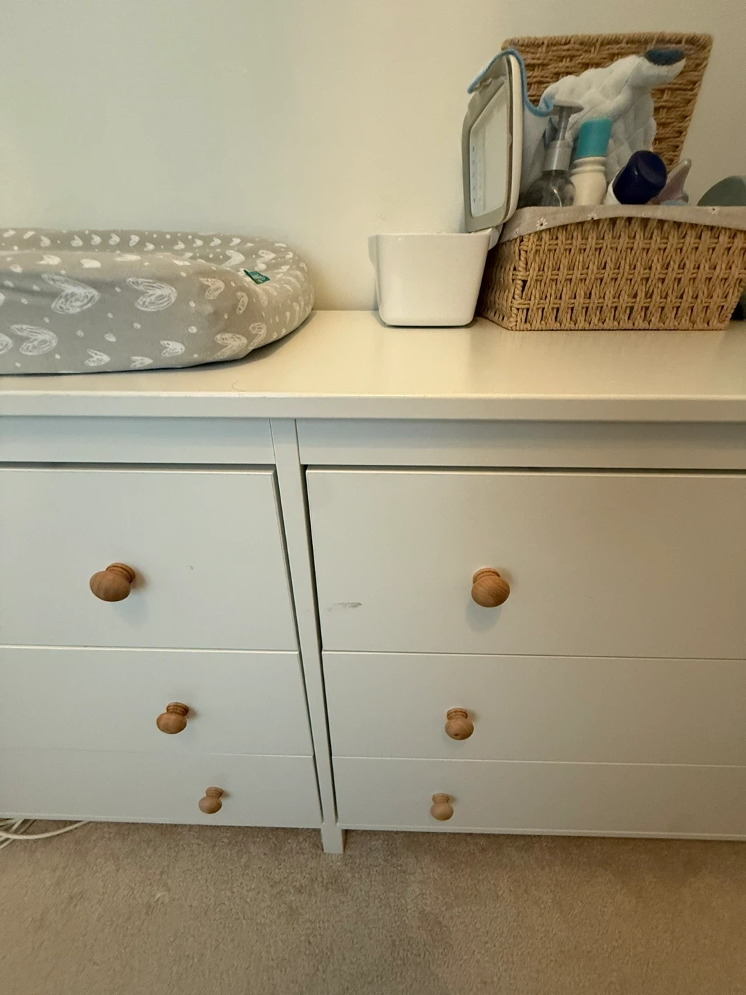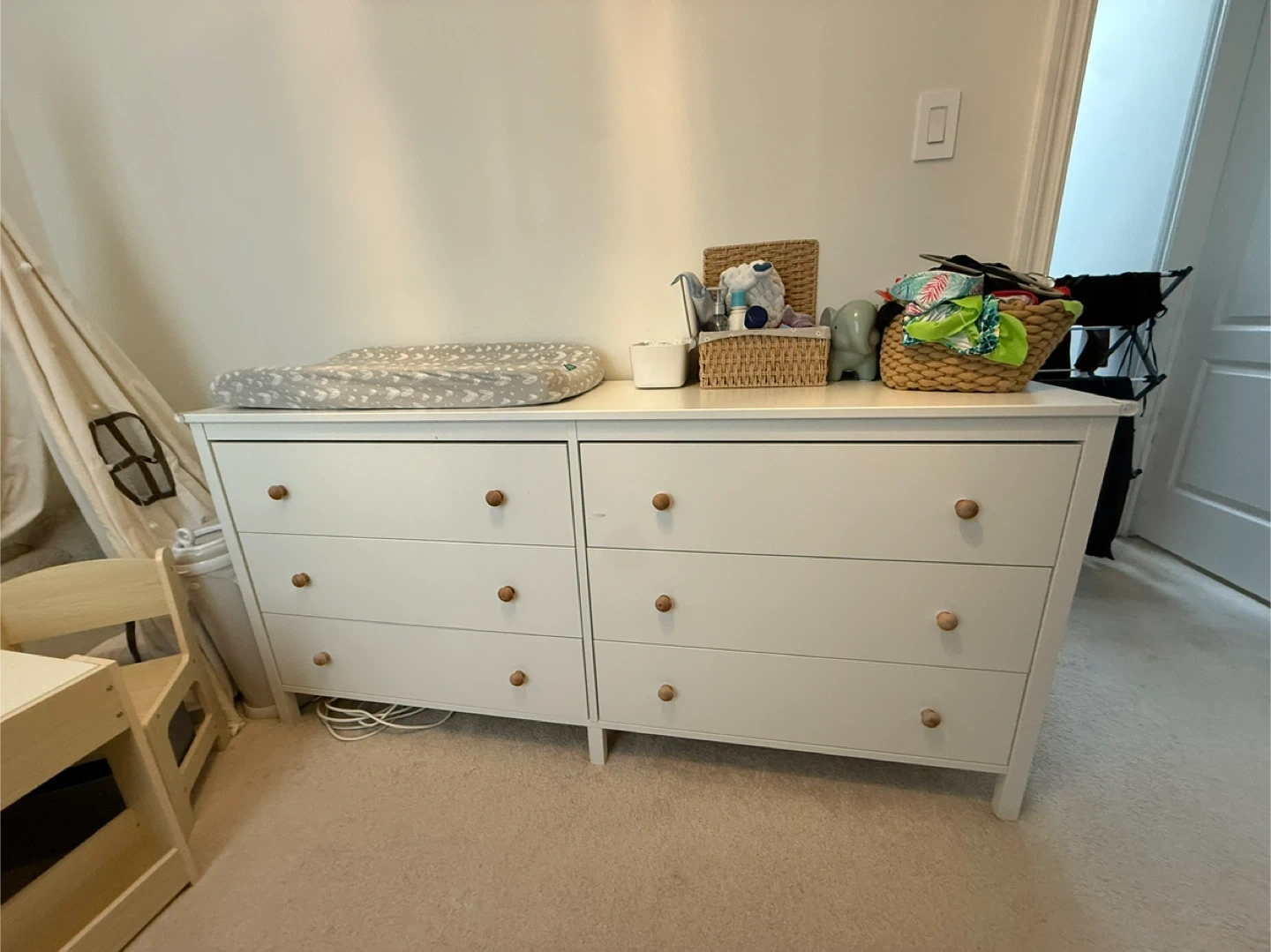 Modern and spacious 6-drawer dresser from IKEA’s KOPPANG series. Excellent for bedrooms, nurseries, or hallway storage. Clean, simple design that fits any decor. Dimensions: 172 cm (W) × 44 cm (D) × 83 cm (H) Condition: Minor wear/scratches Color: White - Wooden Knobs Features: • Smooth-glide drawers • Tons of storage space • Sleek minimalist style Smoke-free home. Can not be disassembled for transport. Pickup only in Yonge/Steeles - Thornhill Area
