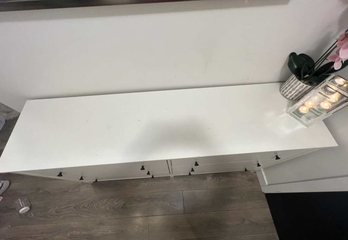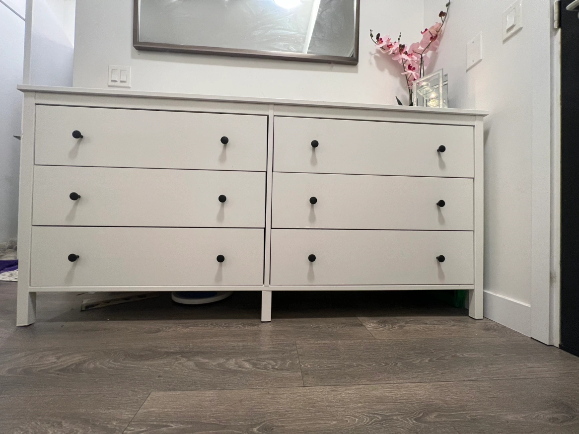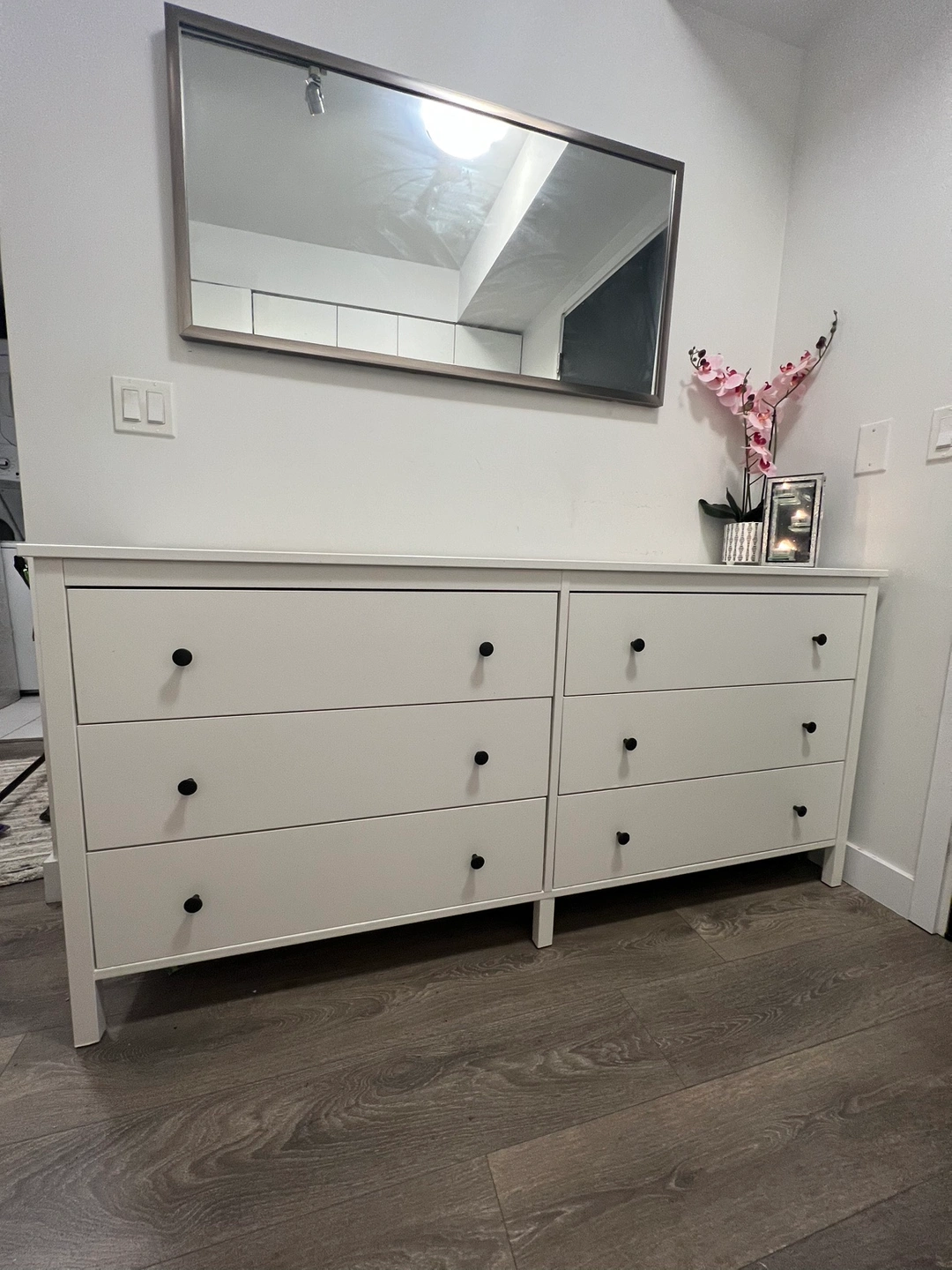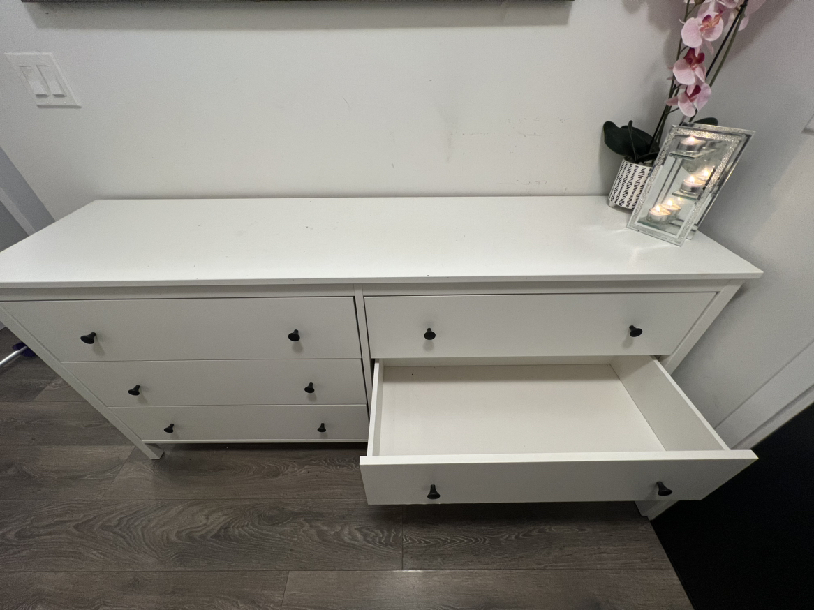 5A simple, functional chest of drawers that goes with any decor, in a bedroom or wherever you place it. There’s room for both your favourite clothes and extra bedding. Psst! Remember to anchor it to a wall. Width: 172 cm (67 3/4 ") Depth: 44 cm (17 3/8 ") Height: 83 cm (32 5/8 ") Drawer width (inside): 75 cm (29 1/2 ") Drawer depth (inside): 39 cm (15 3/8 ") Height under furniture: 11 cm (4 3/8 ")