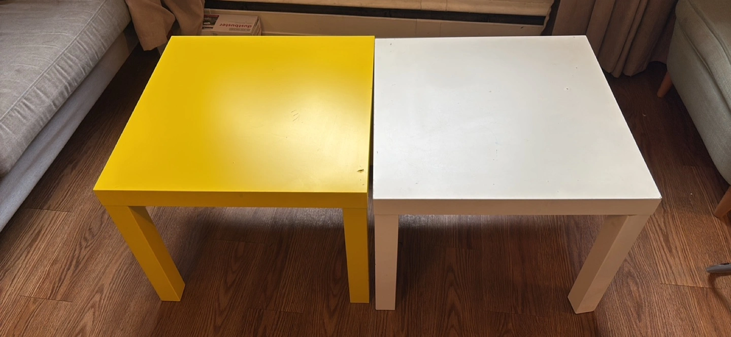 10Two IKEA Lack side tables, one yellow and one white. Both in good condition.