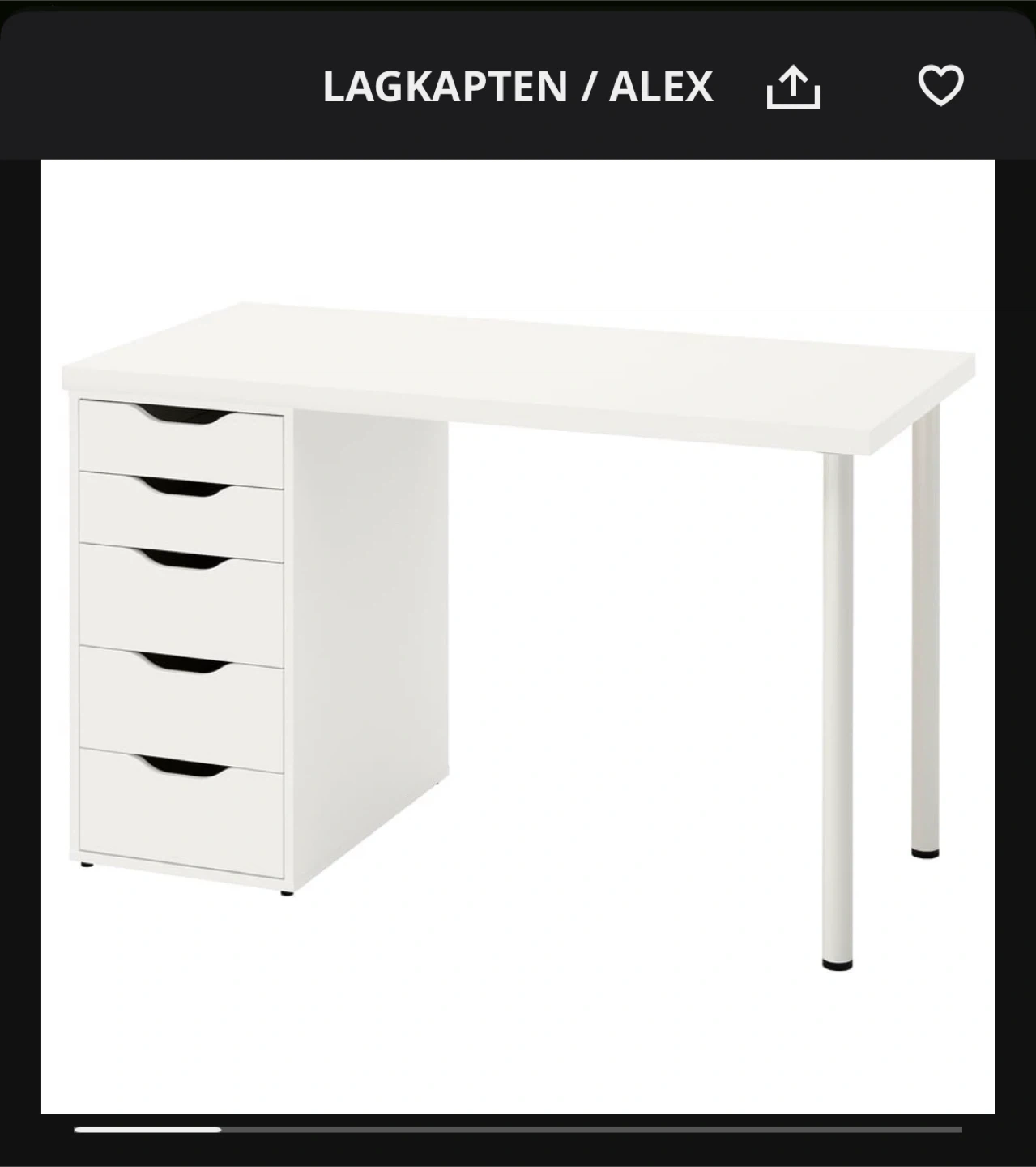 15Selling a brand new fully assembled IKEA LAGKAPTEN / ALEX desk in white. This desk features a clean and simple design, perfect for a home office or study space. It comes with the ALEX drawer unit for convenient storage. Great for keeping your workspace organized!