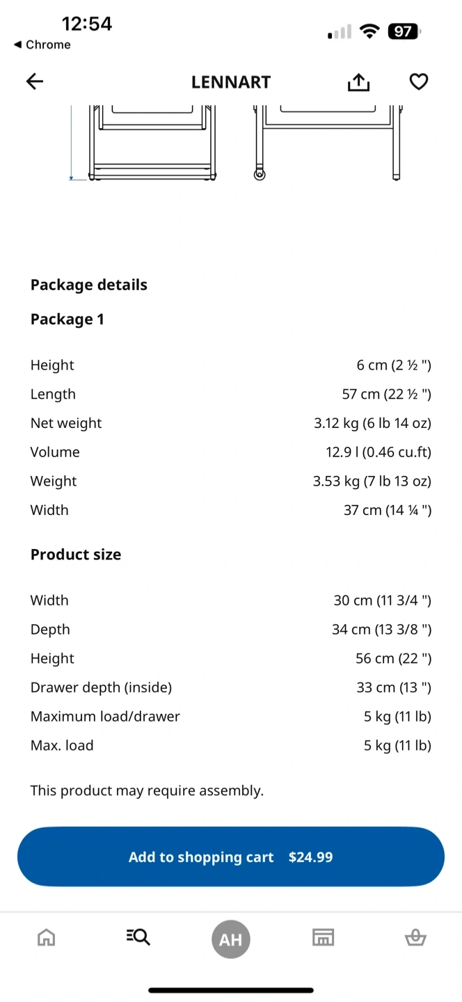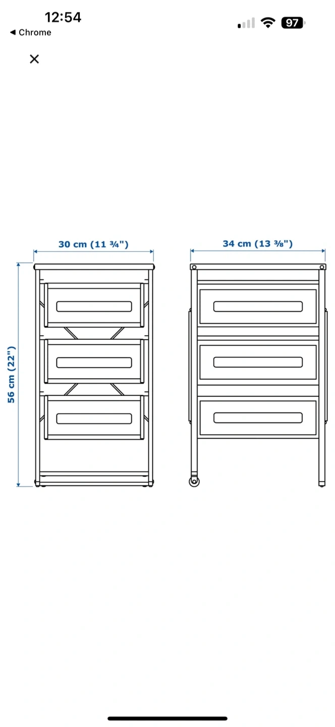 108Selling an IKEA Lennart drawer unit in black mesh! It's a handy little unit for extra storage. One drawer is missing the bottom to hole the corner together. Can probably get the replacement part from IKEA. I don’t have the time to fiddle with it. Does not affect the use of the drawer. Dimensions: - Width: 30 cm (11 3/4 ") - Depth: 34 cm (13 3/8 ") - Height: 56 cm (22 ") - Drawer depth (inside): 33 cm (13 ") Maximum load per drawer is 5 kg (11 lb) Originally bought for $24.99