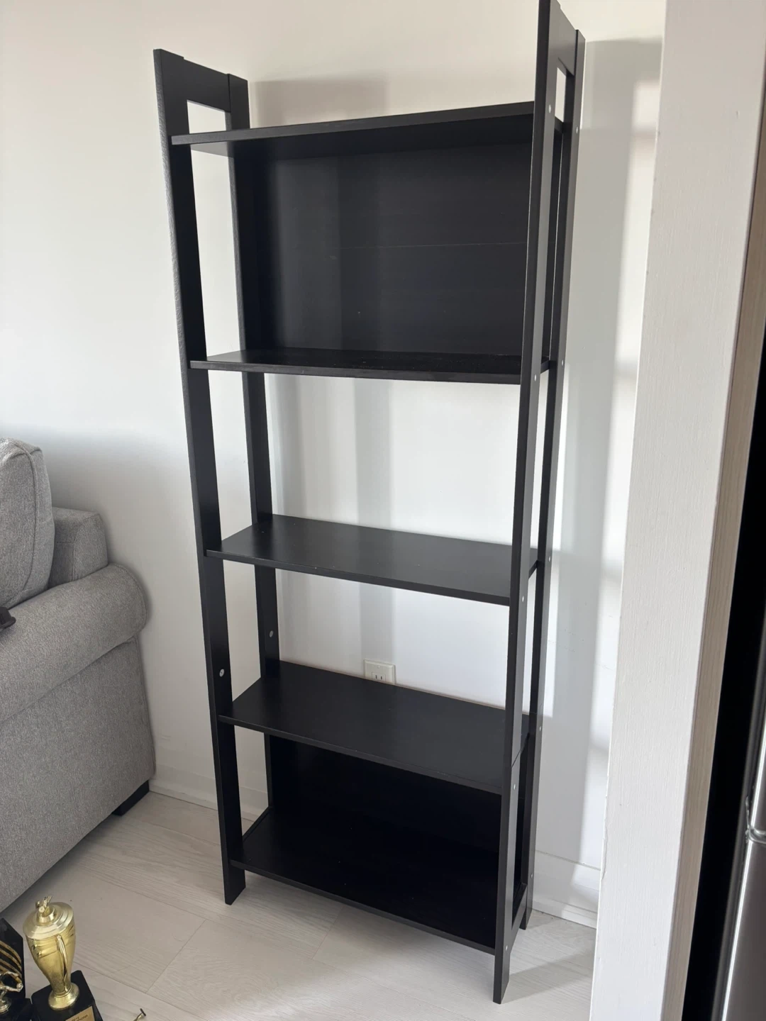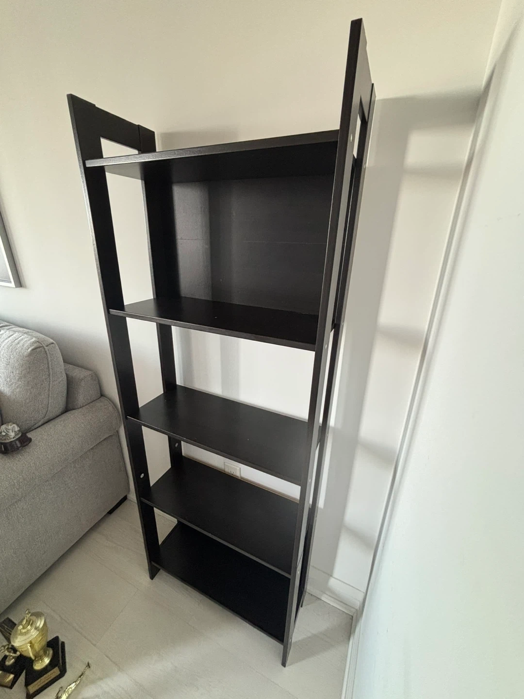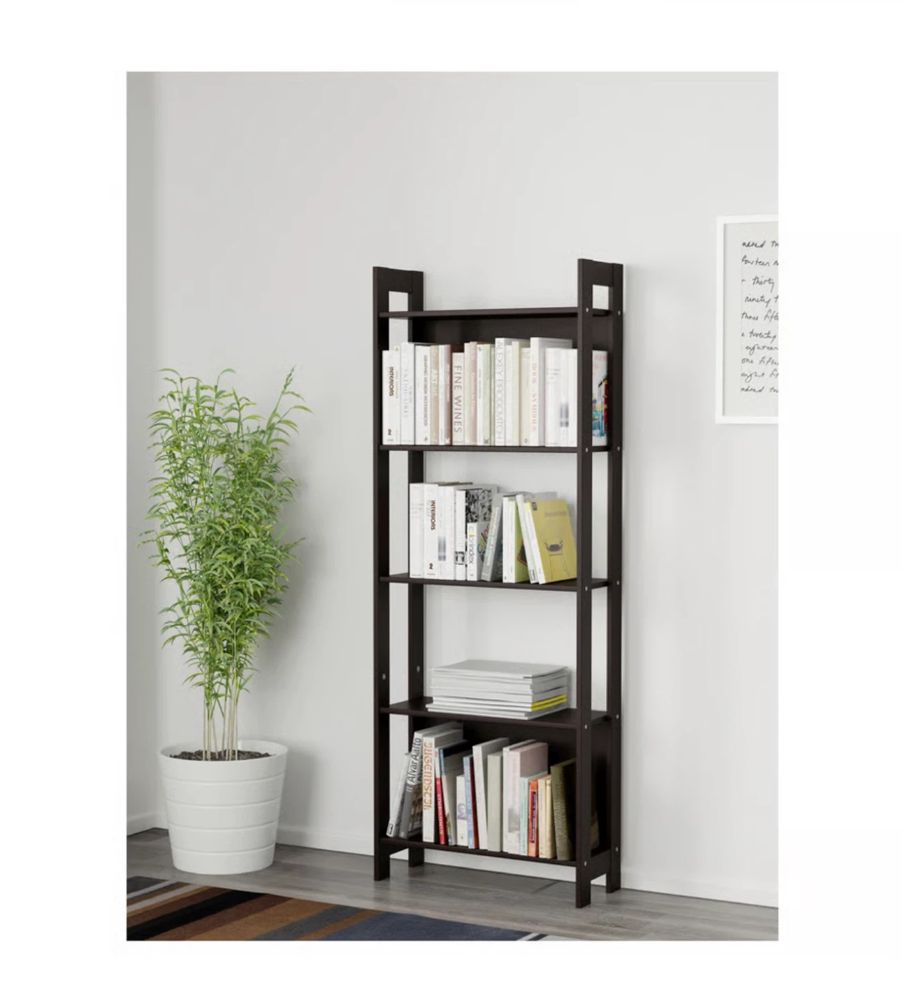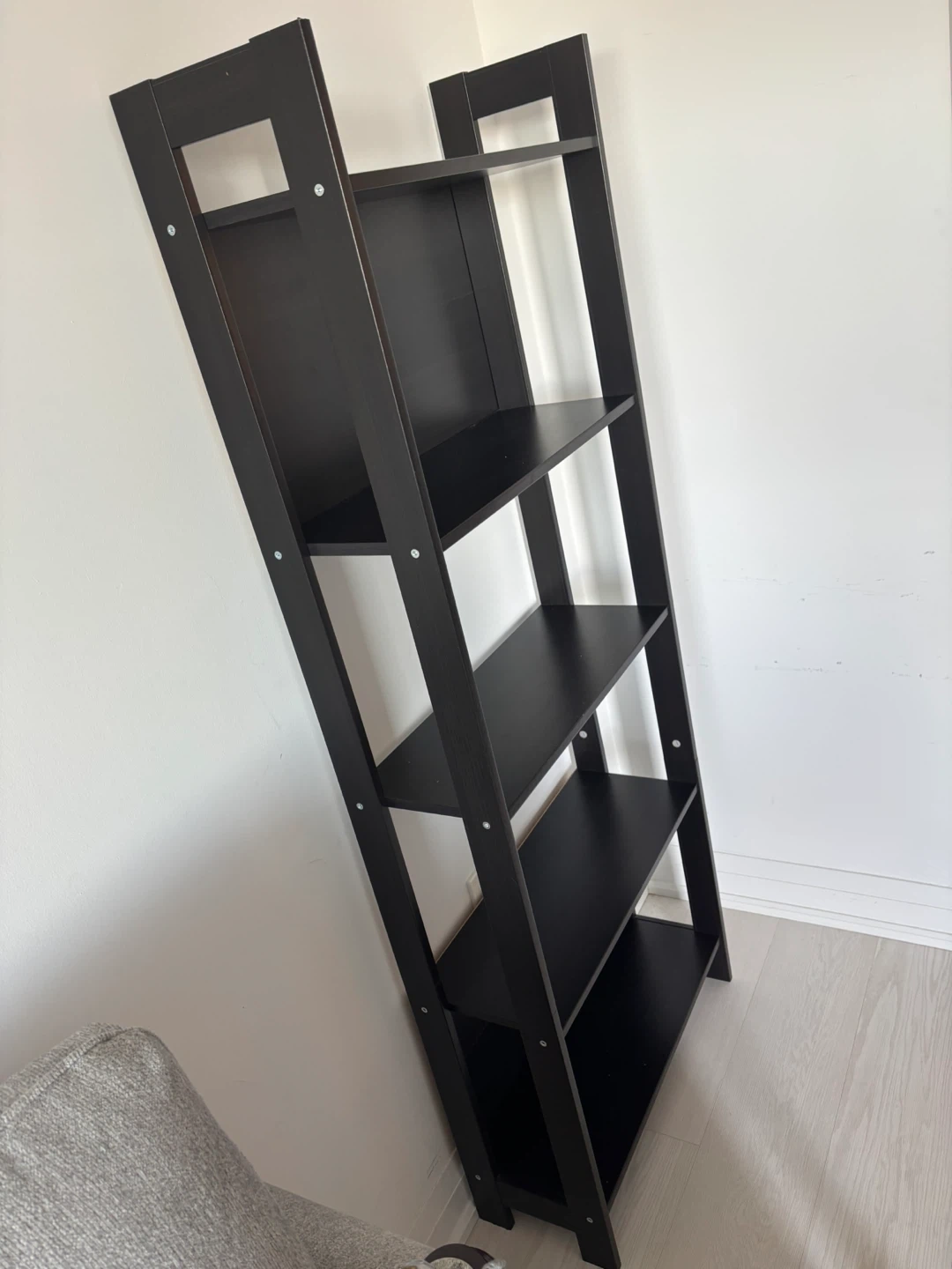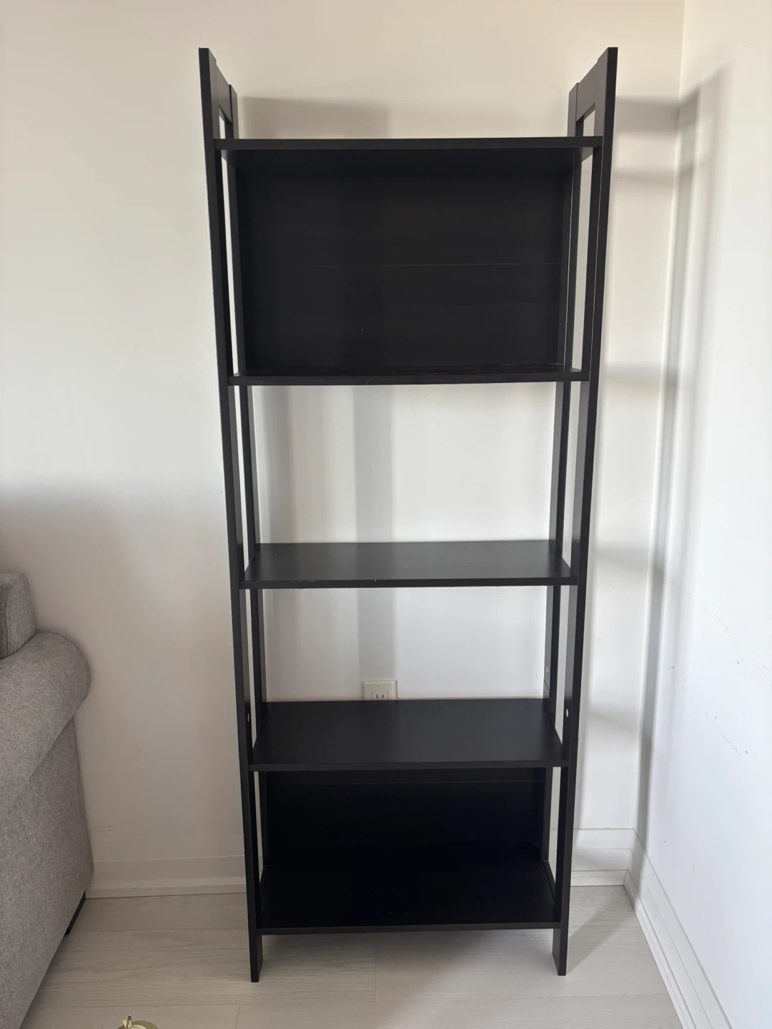 Selling an IKEA Lerberg shelf unit in dark grey! It's in great shape and ready to hold your books, plants, or anything else you'd like to display. It's about 65 inches tall, 24 3/8 inches wide and 9 1/2 inches deep, so it fits nicely in most spaces