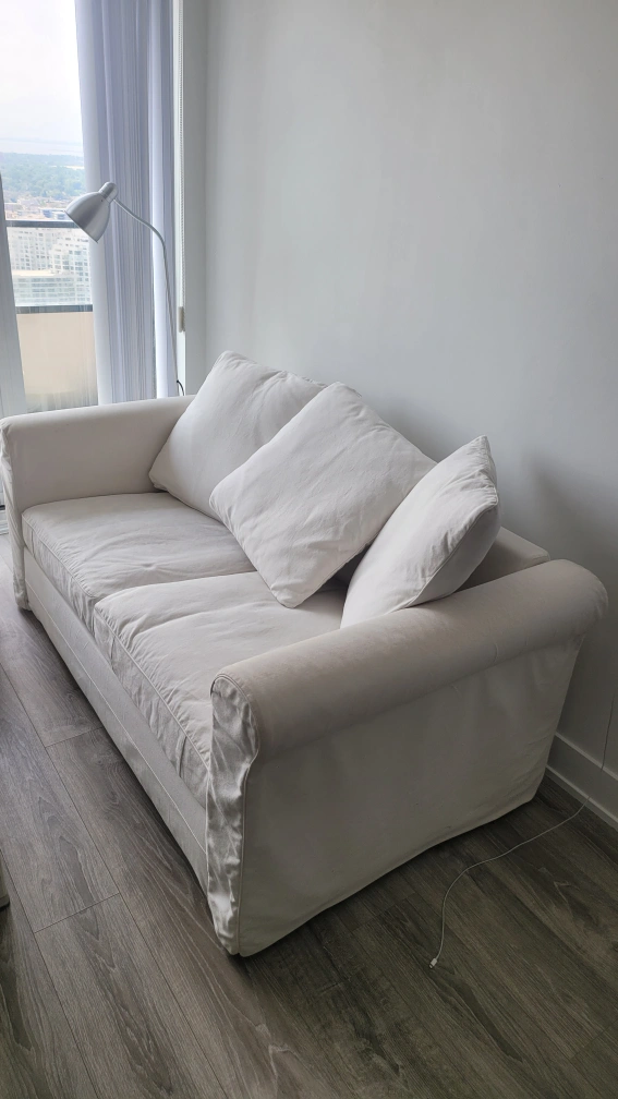 2 couches - 1 with chaise lounge, the other is a sofa bed