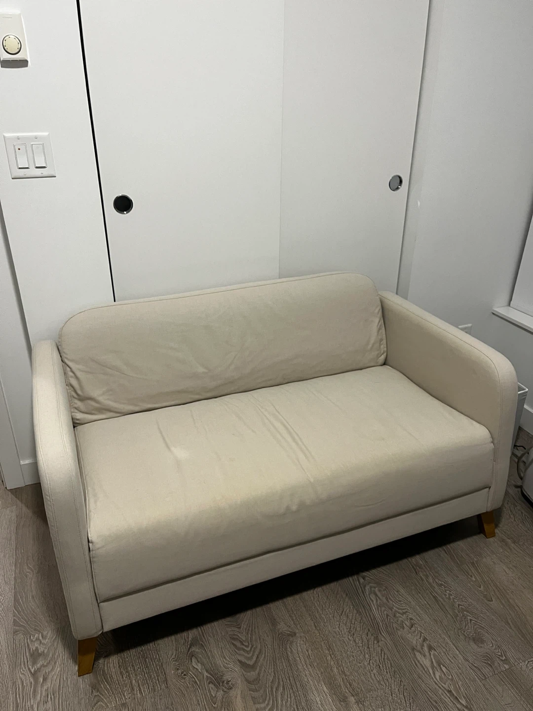 10Selling a comfortable loveseat sofa. It's in good condition and perfect for a small space or apartment. The beige color is neutral and will fit in with any decor. It's a great addition to any living room 📍Pick up near Metrotown
