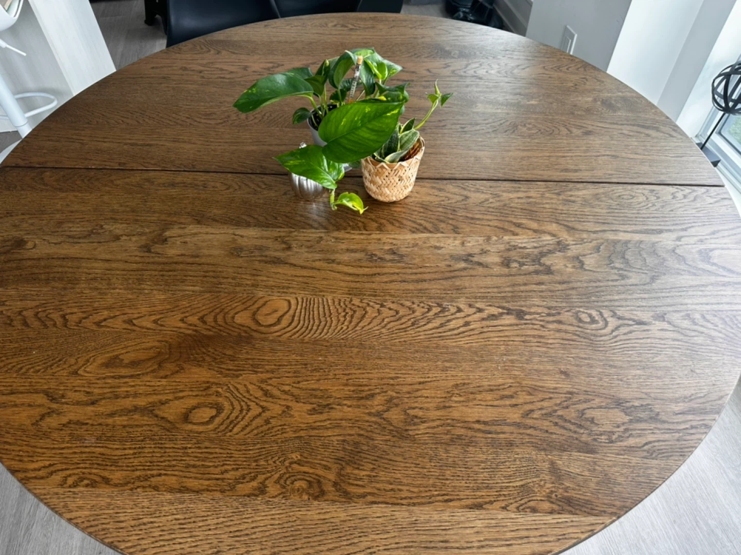Selling an IKEA MÖRBYLÅNGA table in oak veneer with a brown stain. It's a beautiful round table that would look great in any dining room or kitchen. From the screenshot, the table is 145 cm (57 1/8 "). This purchase, along with the other items I’m selling here, will go toward my dog’s surgery. Thank you so much for your kindness and support 🙏🐶