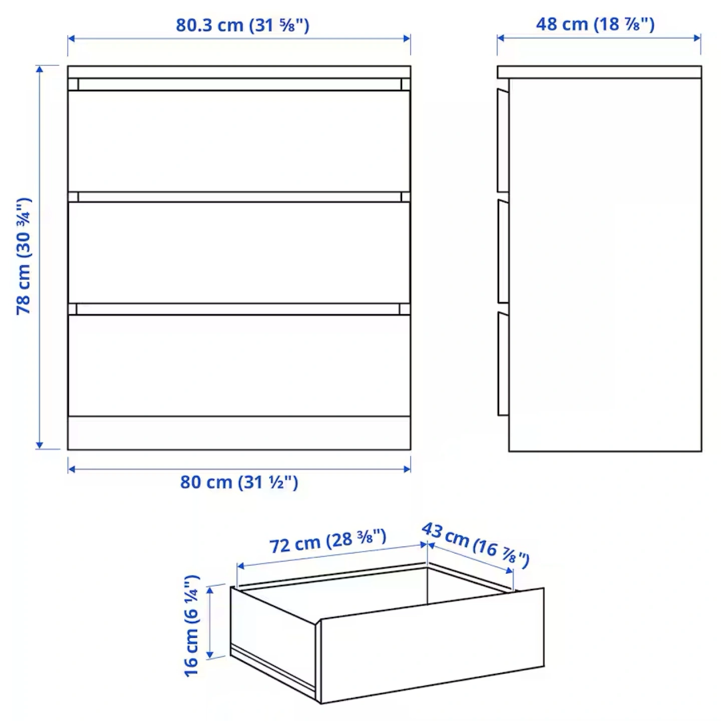 Oak Wood 3-Drawer Dresser (need assembly)