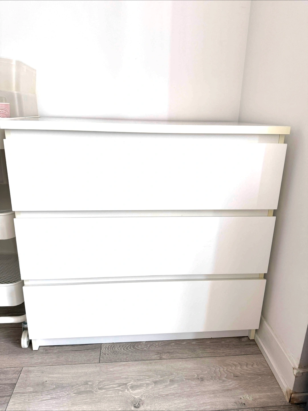 101Selling a white IKEA Malm dresser with three drawers. It's in great shape and perfect for adding some extra storage to any room! Great for organizing clothes, accessories, or anything else you need to keep tidy.