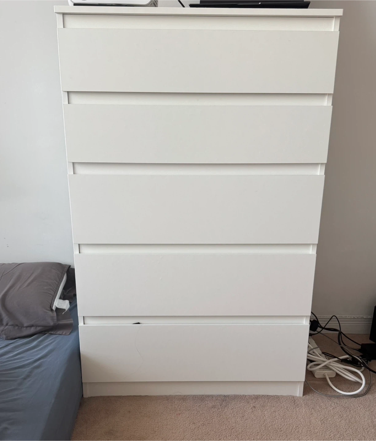 IKEA MALM 6-Drawer Dresser – White – 160×48×78 cm