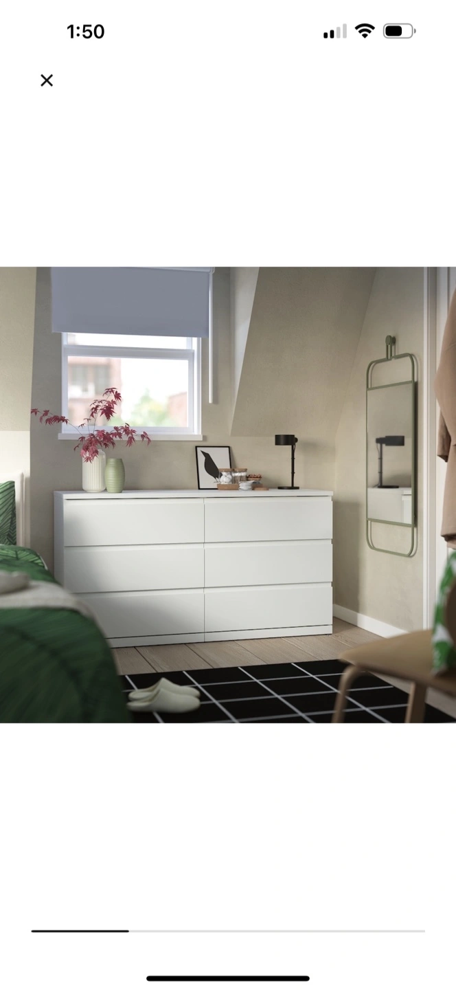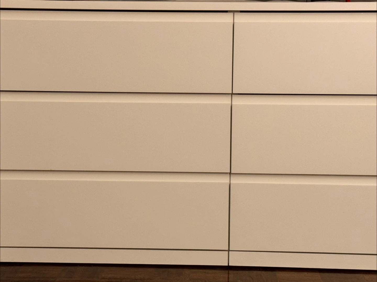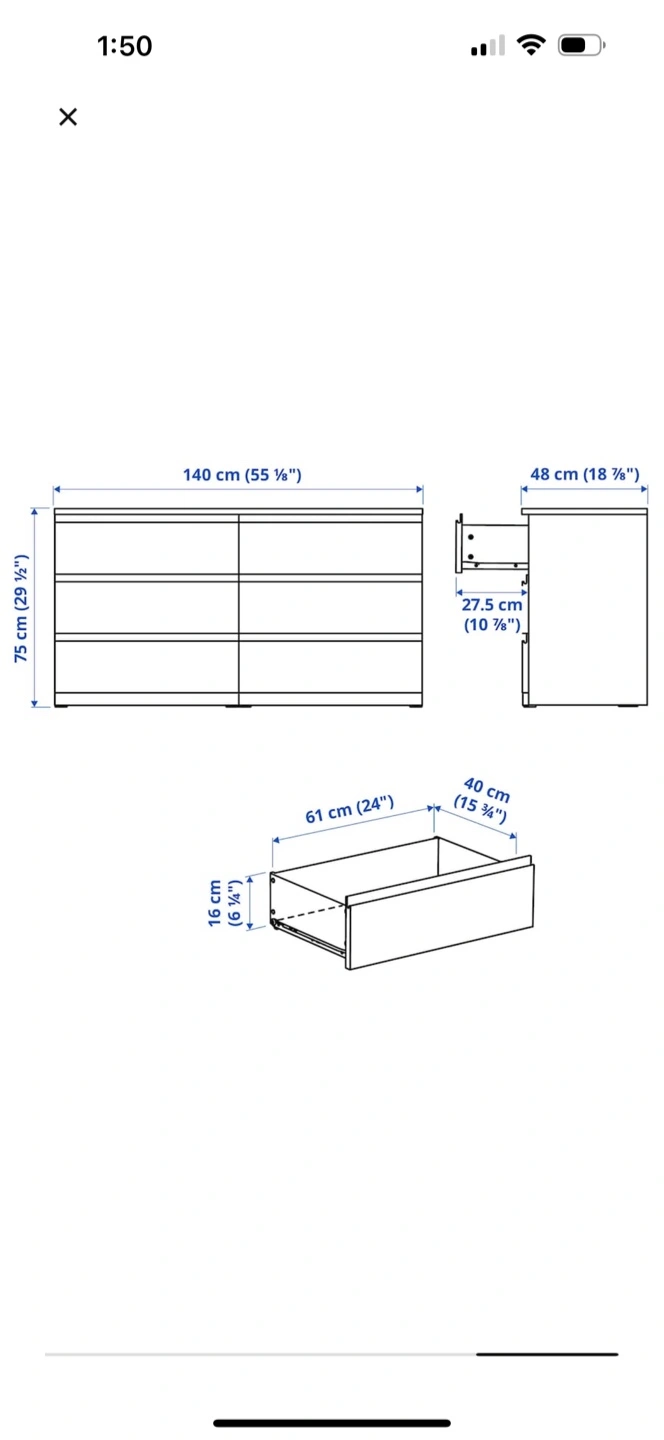 70Selling a used IKEA Malm 6-drawer dresser in white. It's in good condition and ready for a new home. The dimensions are approximately 55 1/8" wide, 29 1/2" high, and 18 7/8" deep. Perfect for adding storage to any room!