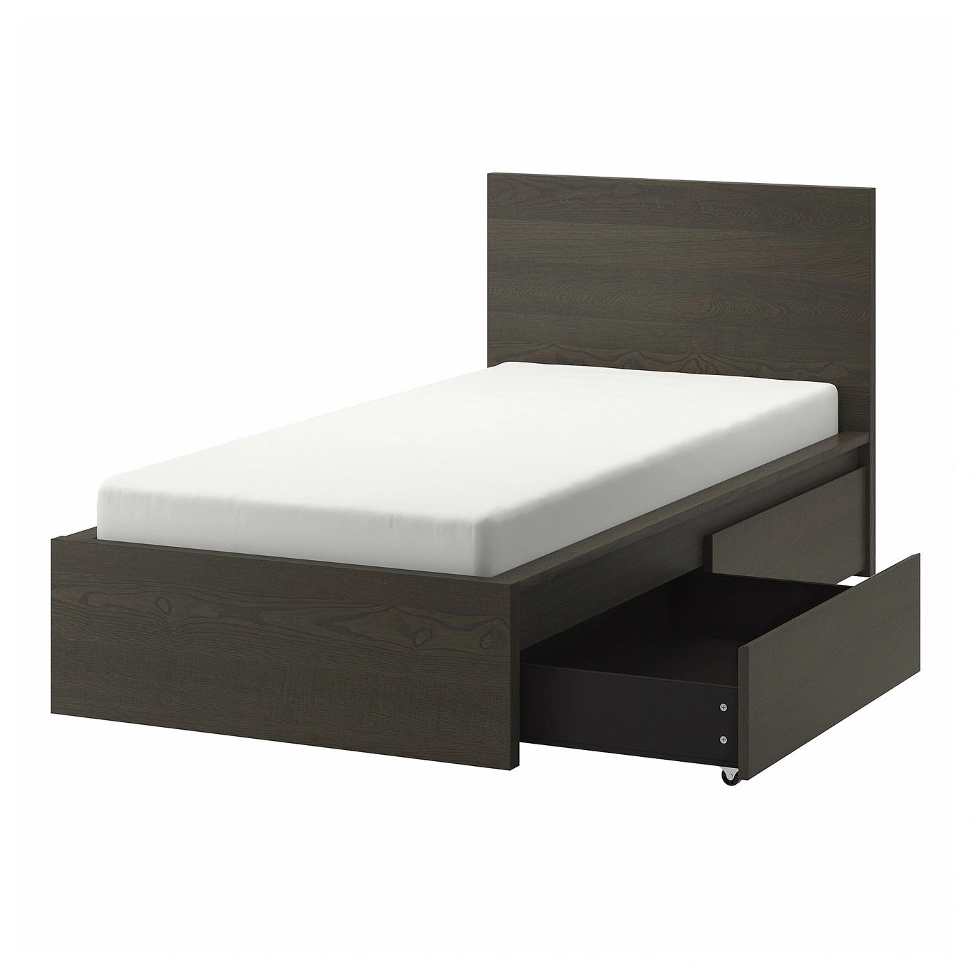 10Looking to sell my IKEA Malm bed frame! It's in good shape and comes with handy storage drawers underneath. Perfect for saving space and keeping your bedroom tidy. The dark wood finish gives it a modern look that fits well with any decor. Slats and metal frame included. If you're interested, send me a message! Non smoking, and no pets!