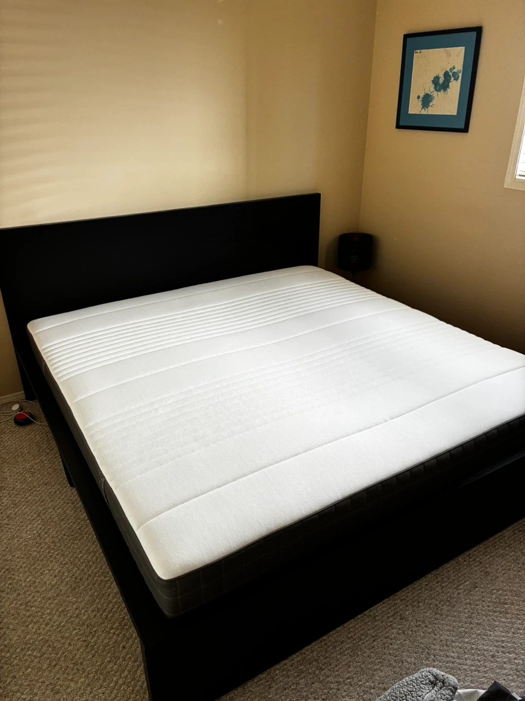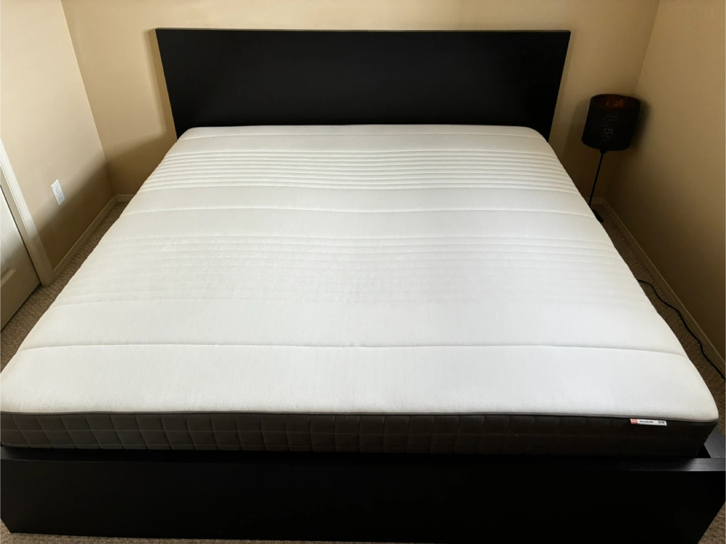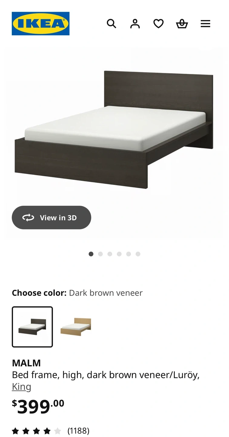 65Selling IKEA Malm king-size bed frame in dark brown veneer! It's in excellent, like-new condition and ready for a new home. This bed frame is super sturdy and stylish, perfect for any bedroom.