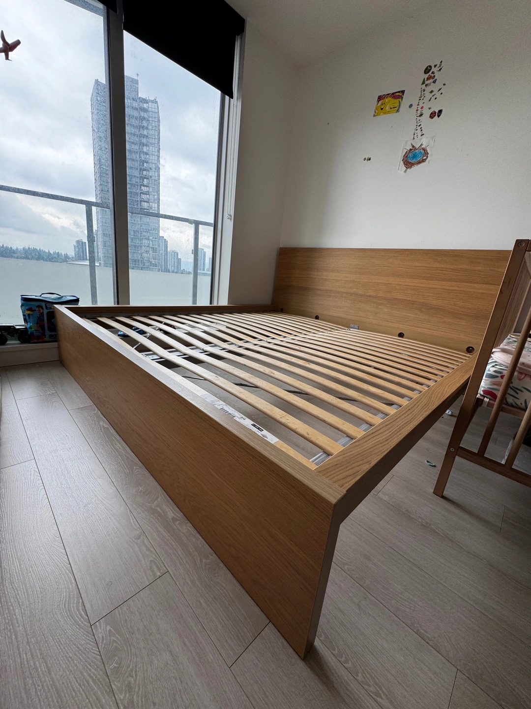 12Ikea Malm King Size Bed - high headboard - can easily vacuum under the bed frame - SKORVA midbeam is included in the price - LURÖY slatted bed base sold separately by Ikea for 70$ is included in the price