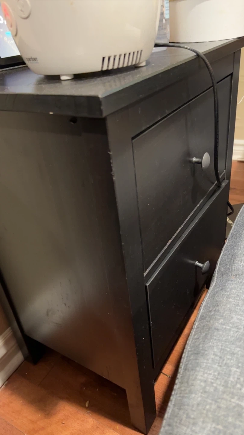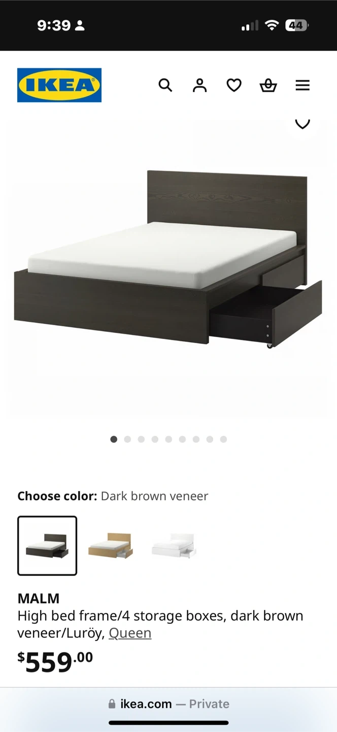 Selling a used IKEA MALM high bed frame with 4 storage boxes in a dark brown veneer. It's a Queen size. Retails for $559 selling for 250 inclusive of nightstand for Free It's in good condition and ready for a new home!