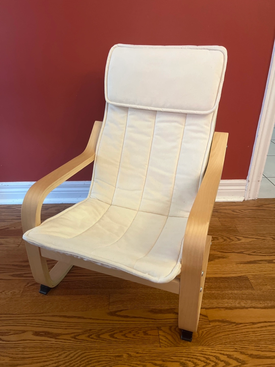 63Adorable children's rocking chair. Light wood frame. Removable off-white cushion. Suitable for toddlers and young children. Gently used excellent condition seat was kept covered. $50 FIRM Cash only please.