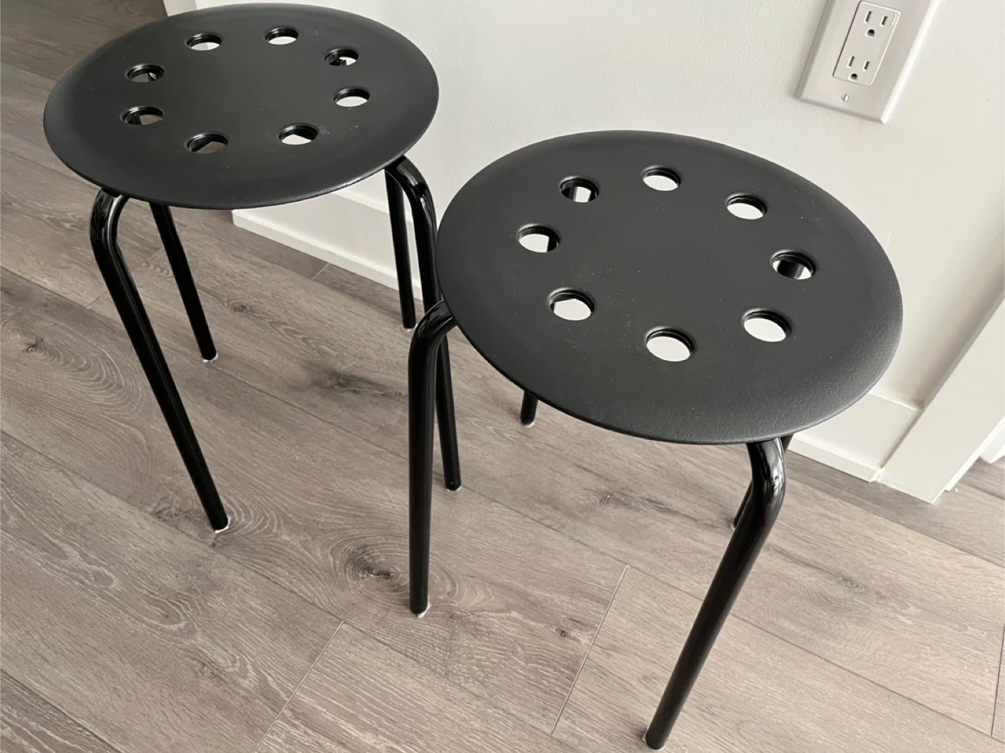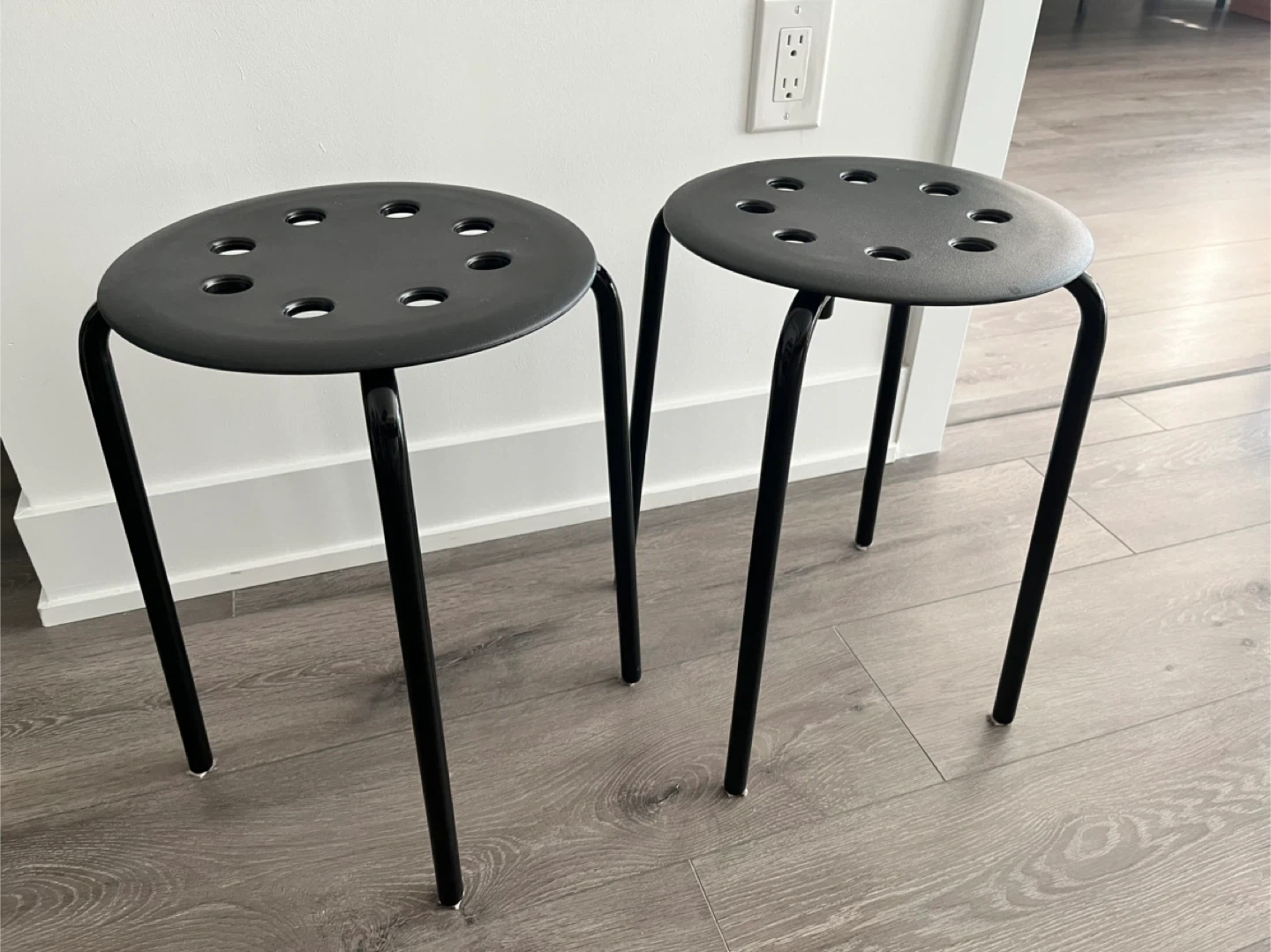 ********Moving-out Sale****** Pick-up is available only on Oct 27th or 28th! IKEA Marius stool, black * 2 Hardly used, still like new https://www.ikea.com/ca/en/p/marius-stool-black-10135659/ Selling a set of two IKEA Marius stools in black. They're in great shape and perfect for adding extra seating to your space. Lightweight and easy to move around, these stools are super practical and stylish. Great for small spaces!