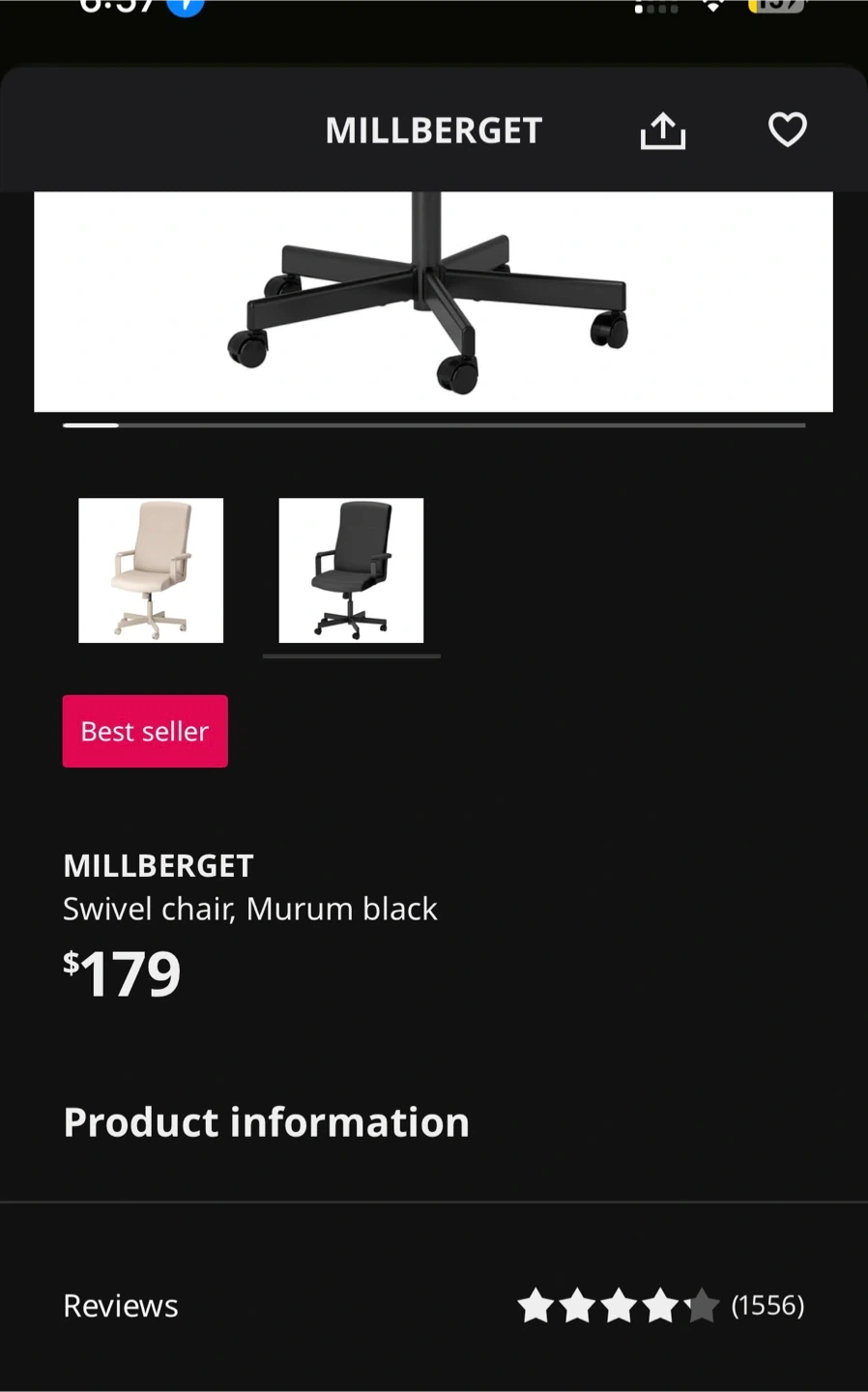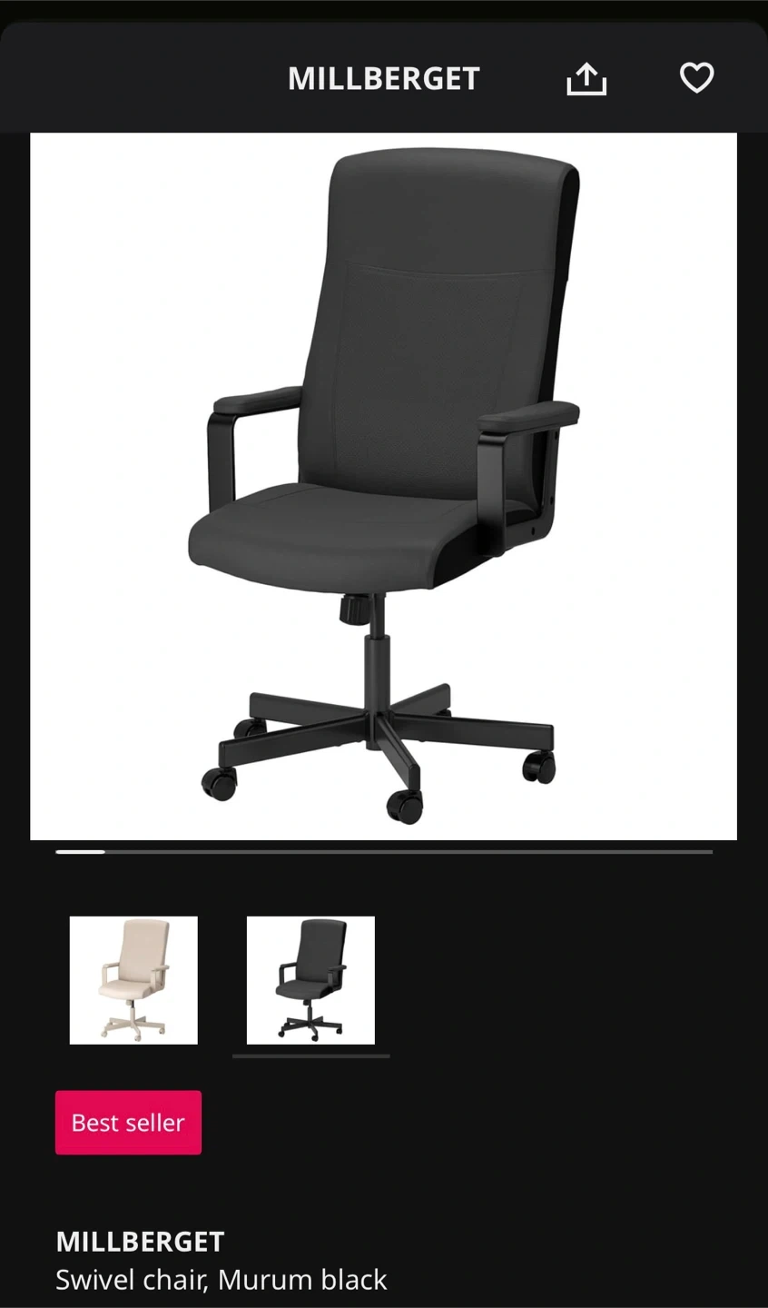 60Selling a brand new IKEA Millberget swivel chair in Murum black! It's still in its original box, never been opened. A best seller! Retails for $179.