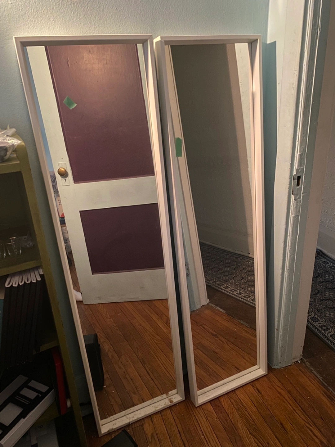 477https://www.ikea.com/ca/en/p/nissedal-mirror-white-90503775/ We have two! Charging $40 each, negotiable. Moving at the end of the month and we sadly don’t have space for them. In the photo you can see some dust on them but this can just be brushed off - they are clean!