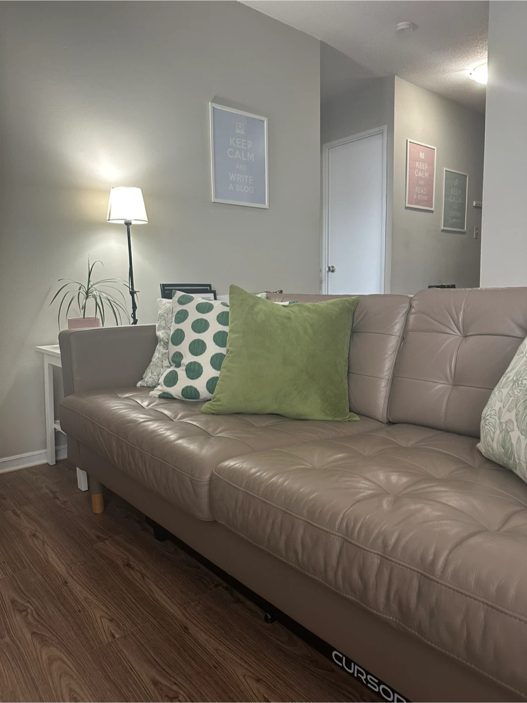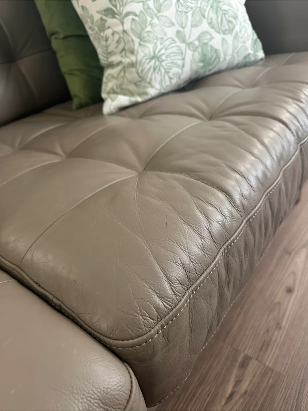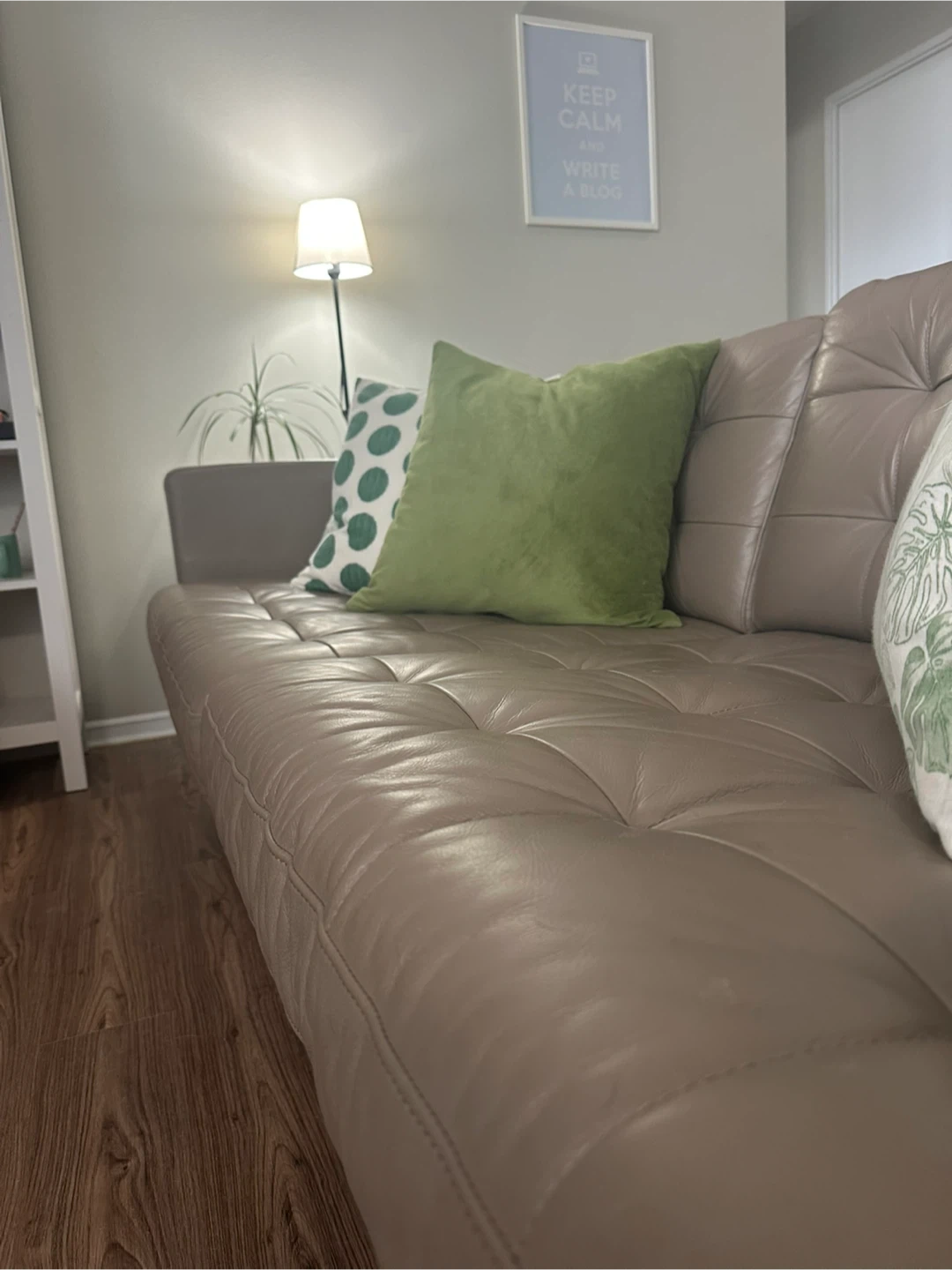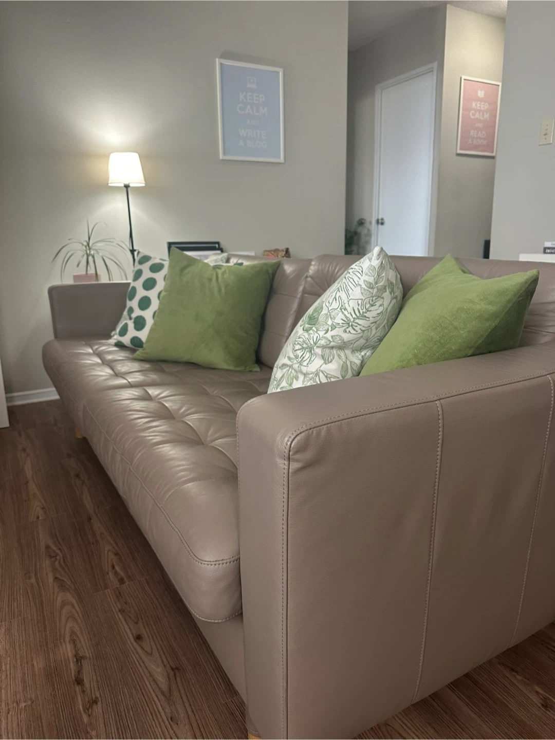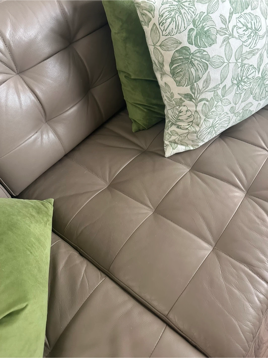 Selling a very comfy IKEA faux leather sofa with wooden legs. It's a lovely dark beige colour and would look great in any living room. It's in great condition and ready for a new home. It’s perfect for families with pets and kids, as it’s very easy to clean. 🧽🫧 The arms are slightly bent (as seen in the photos). There are no fabric damage, except for a very tiny scratch (only superficial, not actually noticeable) that my dog made a few years ago. It’s very comfortable — even to sleep on it. Brand: IKEA Model: MORABO Size: 206cm x 92cm x 81cm (H) 💰 Original Price at IKEA: $ 1,690 + tax ✨ This colour is not available at IKEA anymore.