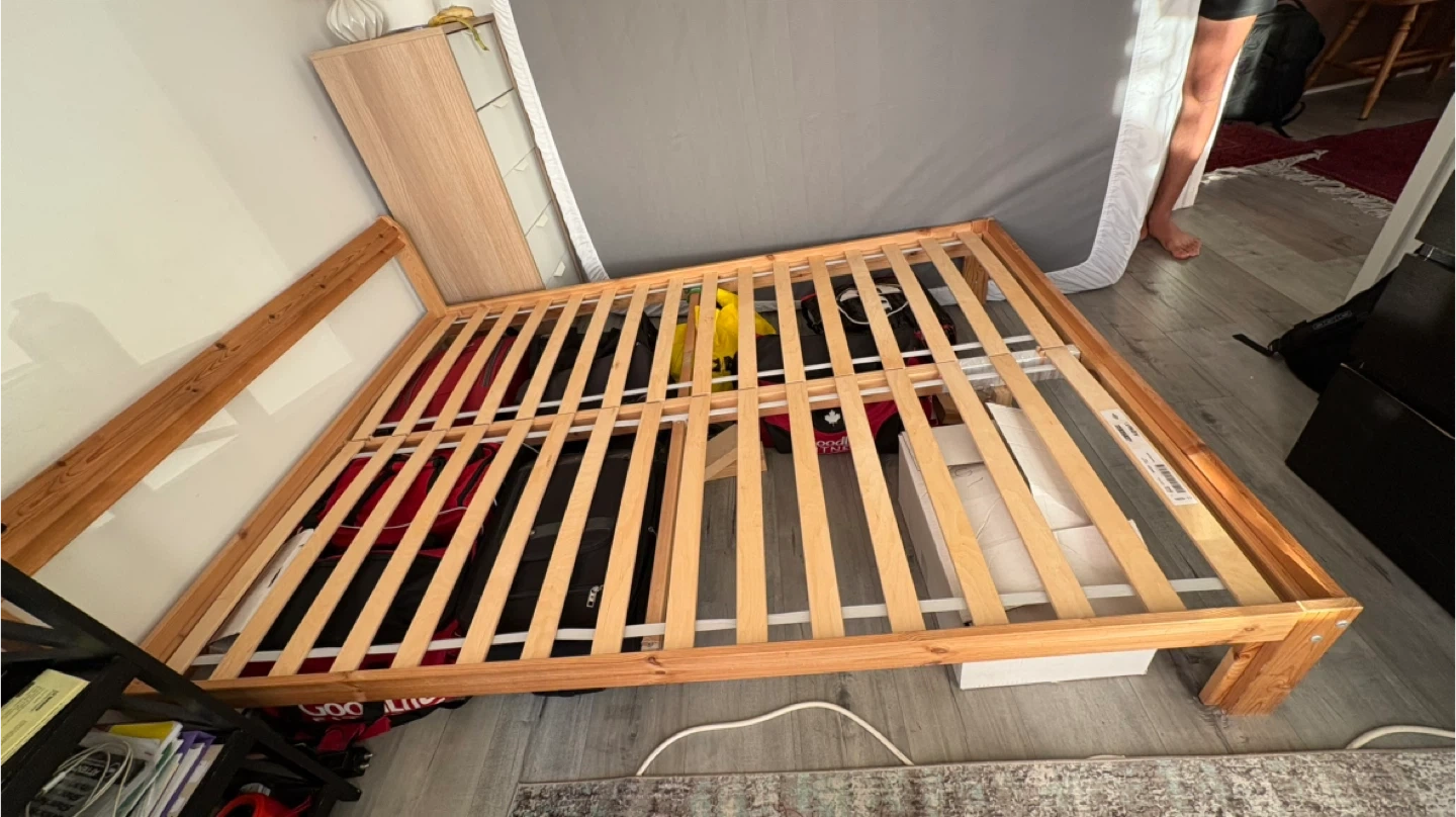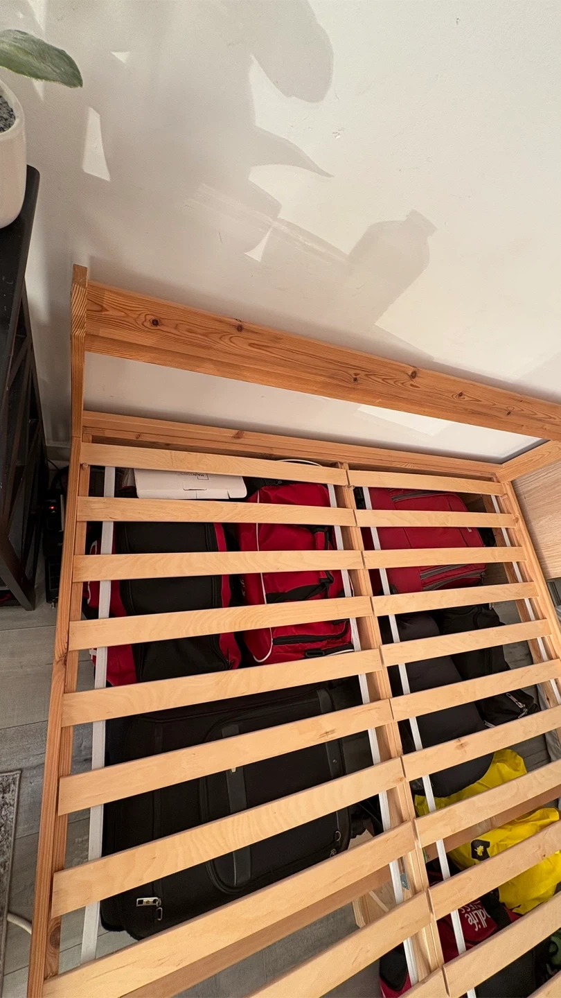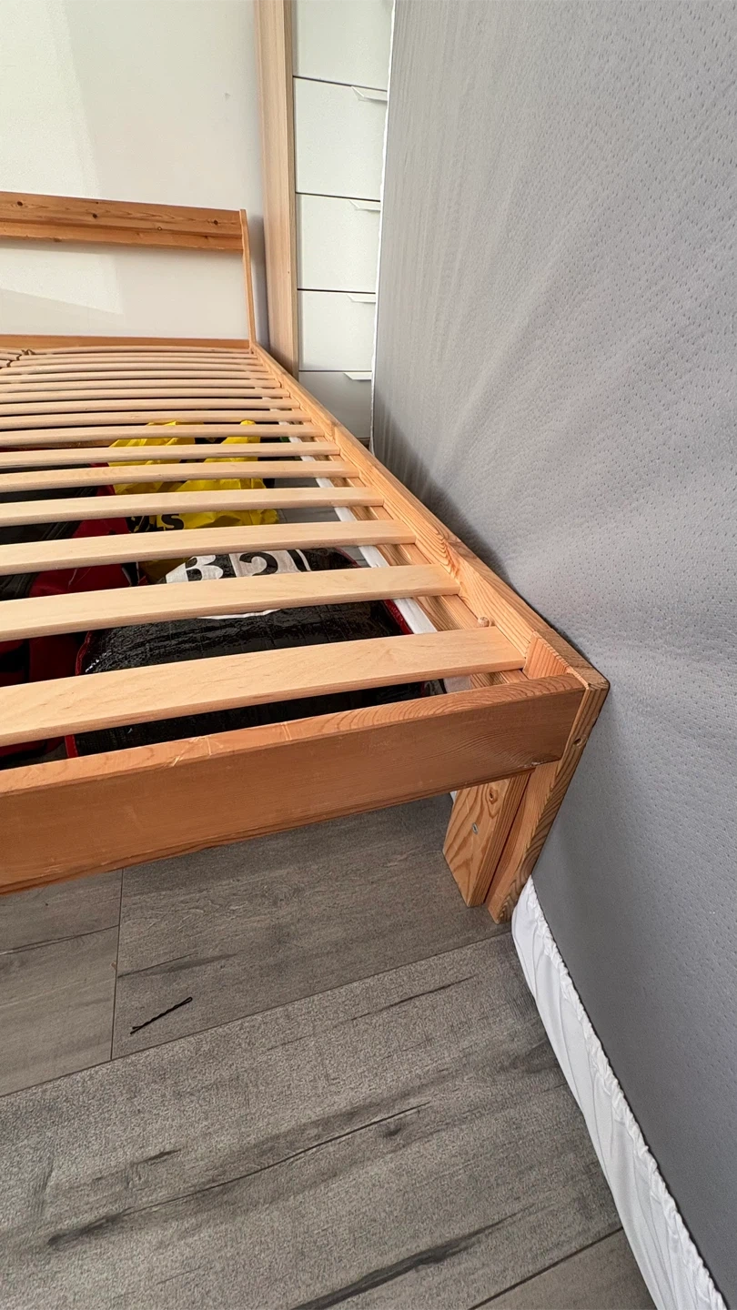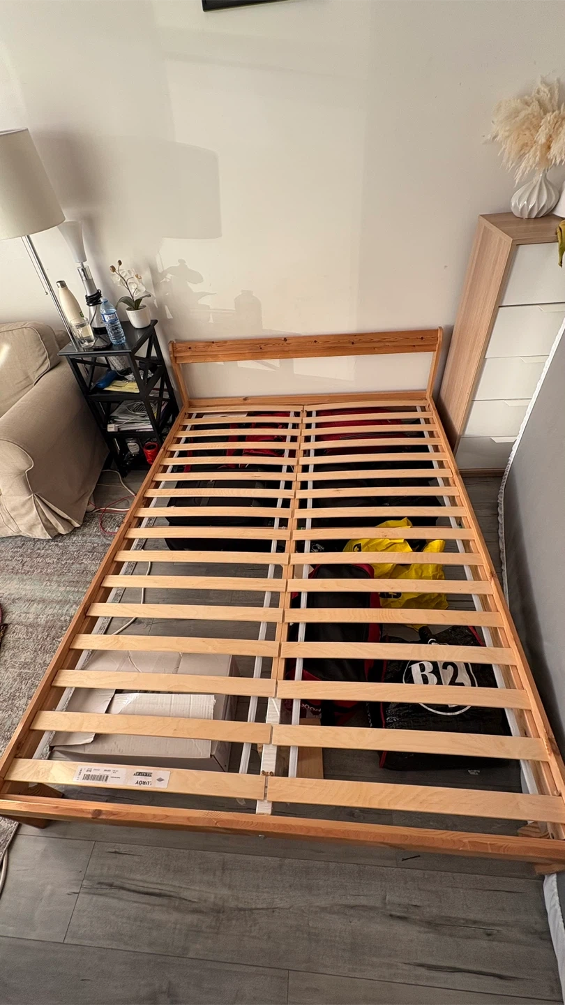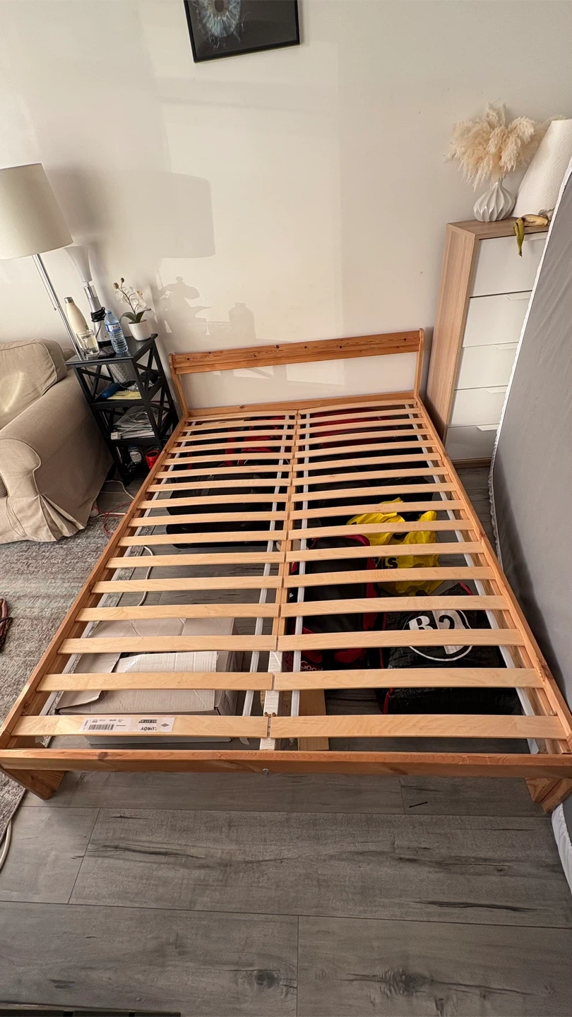 Selling a used IKEA Neiden bed frame. It's a double/full size and made of solid wood. Perfect for a spare room or someone just starting out! It's in good condition and ready for a new home
