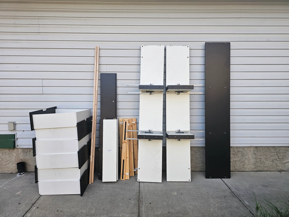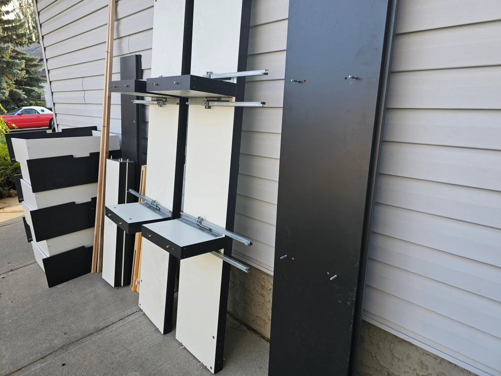 15Selling an IKEA NORDLI bed frame with drawers in black/brown. It's disassembled and ready for easy transport. The drawers provide great storage space. A reference photo of the assembled bed is included!