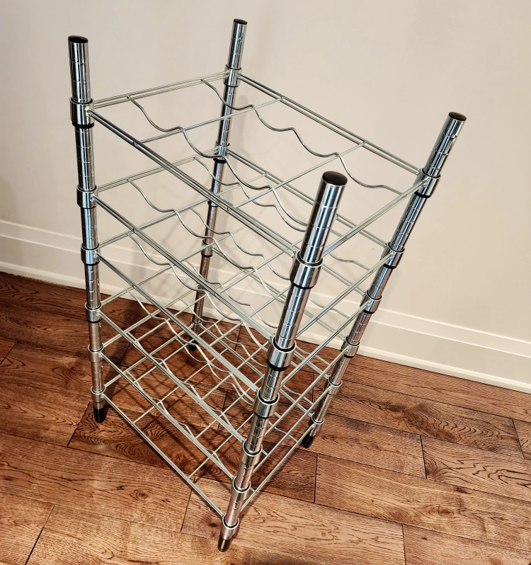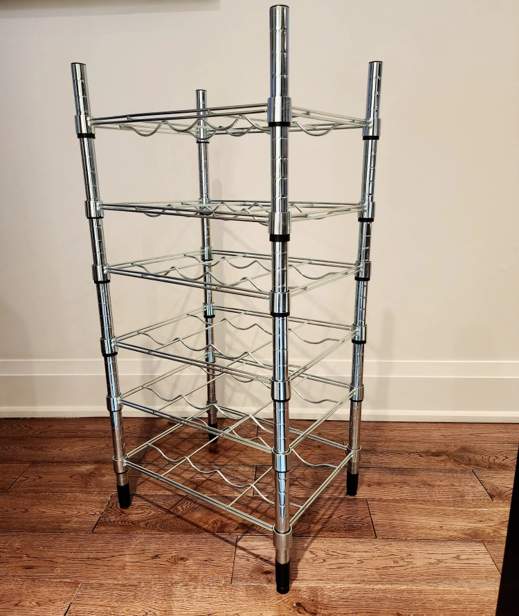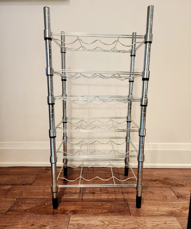 183As good as new. 6 shelves Holds 24 bottles. Shelves can be adjusted to different heights. Also stands steady on an uneven floor since the feet can be adjusted. Can also be used in damp areas indoors. Measurements: 46x36x94 cm (18 1/8" x 14" x 37 ") Pick up College and Dufferin. Cash on hands.