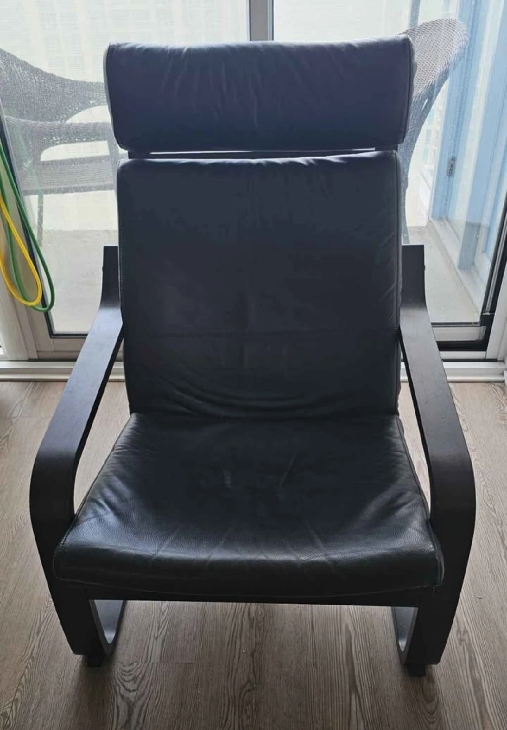 Selling a comfy IKEA POÄNG armchair in dark brown. It's in good condition and ready for a new home! Dimensions are approximately 100cm (39 3/8") tall, 68cm (26 3/4") wide, and 82cm (32 1/4") deep CURRENT MARKET PRICE IS $281 Bought: April 2025 Condition: Like new