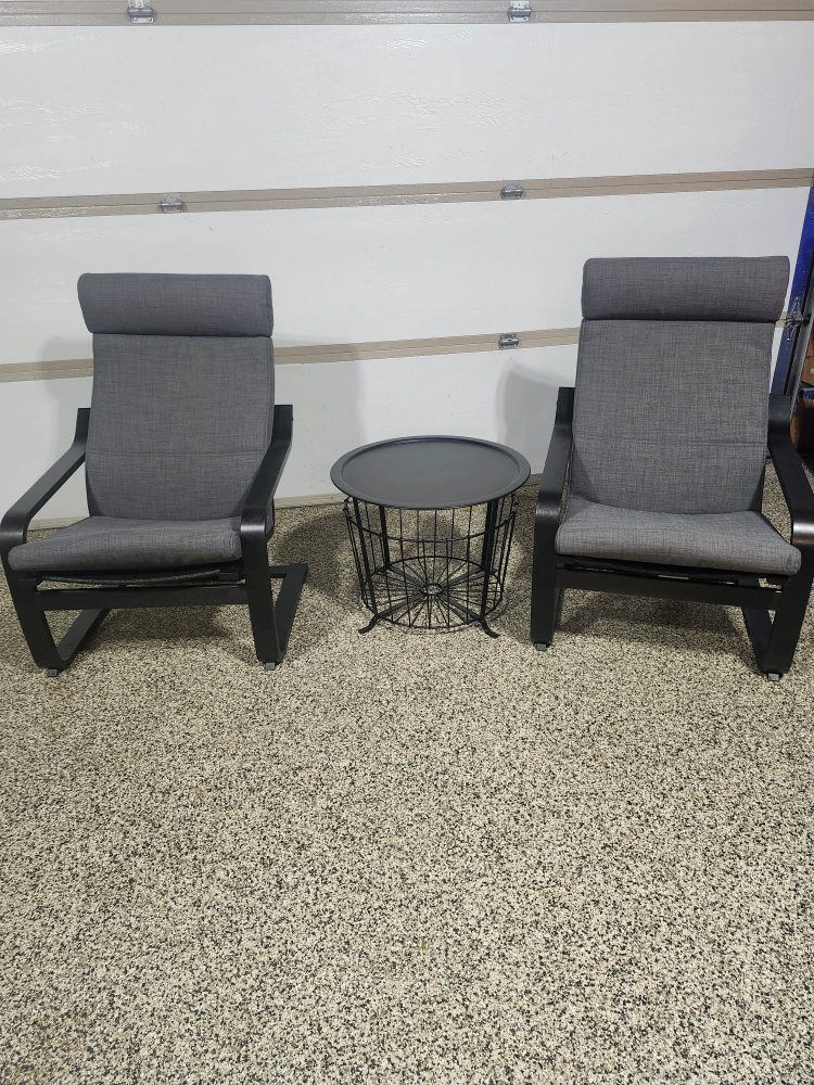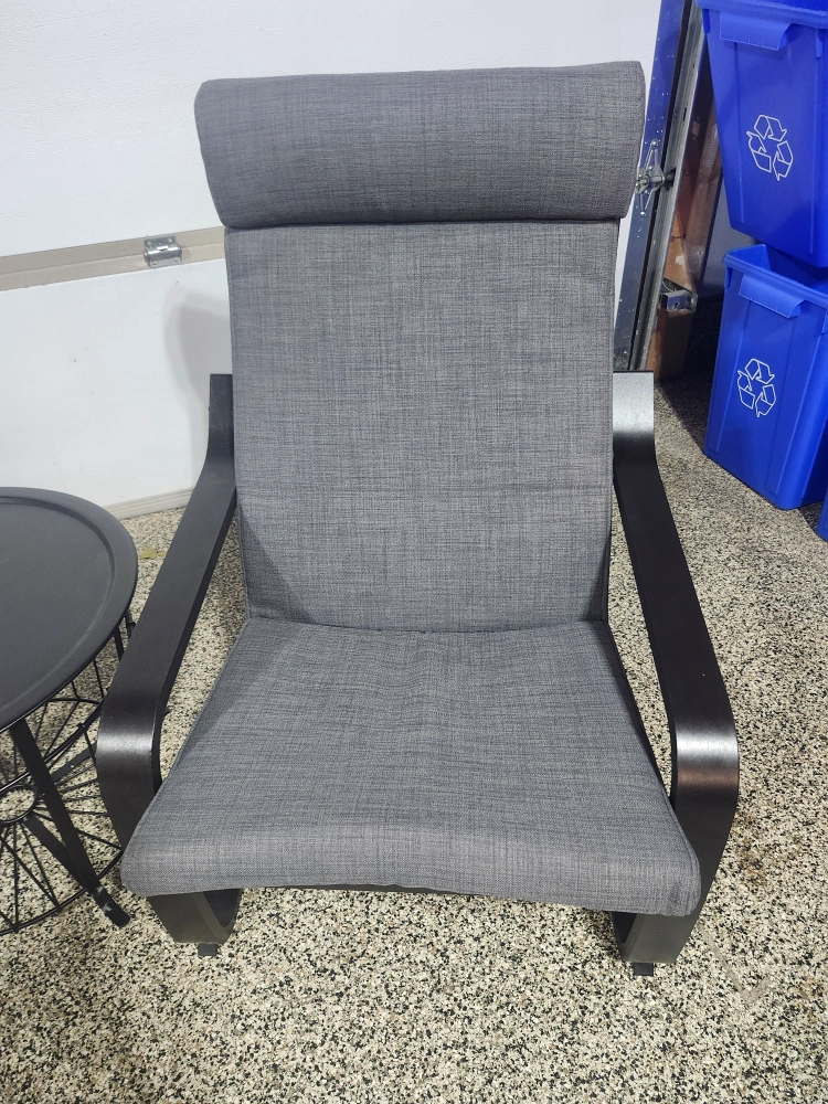 Selling a comfortable grey IKEA Poang chairs and storage table! They are new and only used for staging and in great condition. Price listed is to sell and wont be taking low offers. Clean, smoke free and pet free home selling chairs for $100 ea. Selling table for $80 Will sell entire set for $250