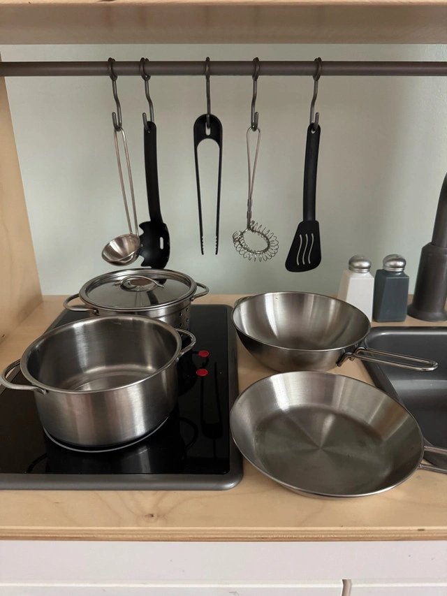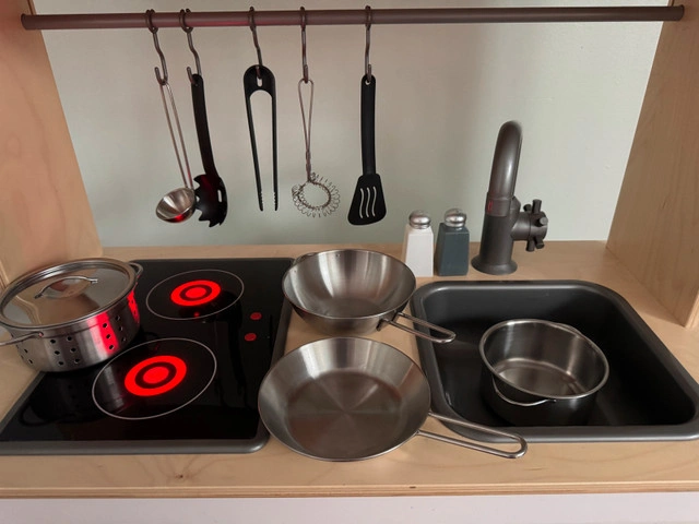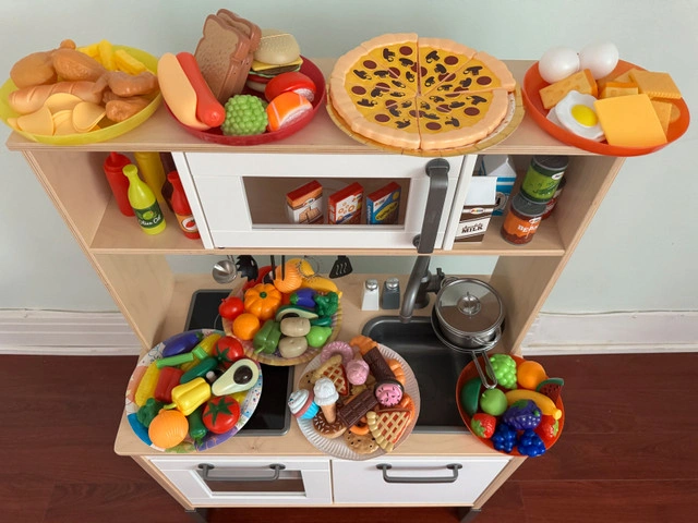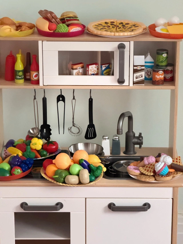 27Selling an IKEA Duktig Pretend Play Kitchen in good condition — includes over 100 accessories such as utensils, pots, pans, dishes, and play food. Everything is clean, organized, and ready for hours of imaginative fun! Perfect for toddlers and kids who love pretend cooking. ✨ Includes: • IKEA Duktig play kitchen • 100+ accessories (utensils, pots, dishes, play food) • Bonus: a few small toy appliances included as a free gift (some of them are broken, so they’re just for play or parts) If purchased new, the whole set would cost around $232 + tax — get everything together here for much less! Smoke-free, pet-free home. Pickup at door.