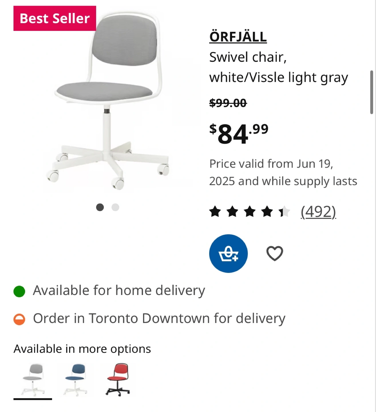 Selling an IKEA ÖRFJÄLL swivel chair in the white/Vissle dark grey colour! It's a best seller and in great condition. I bought this for $84.99. Price valid from Jun 19, 2025 and while supply lasts