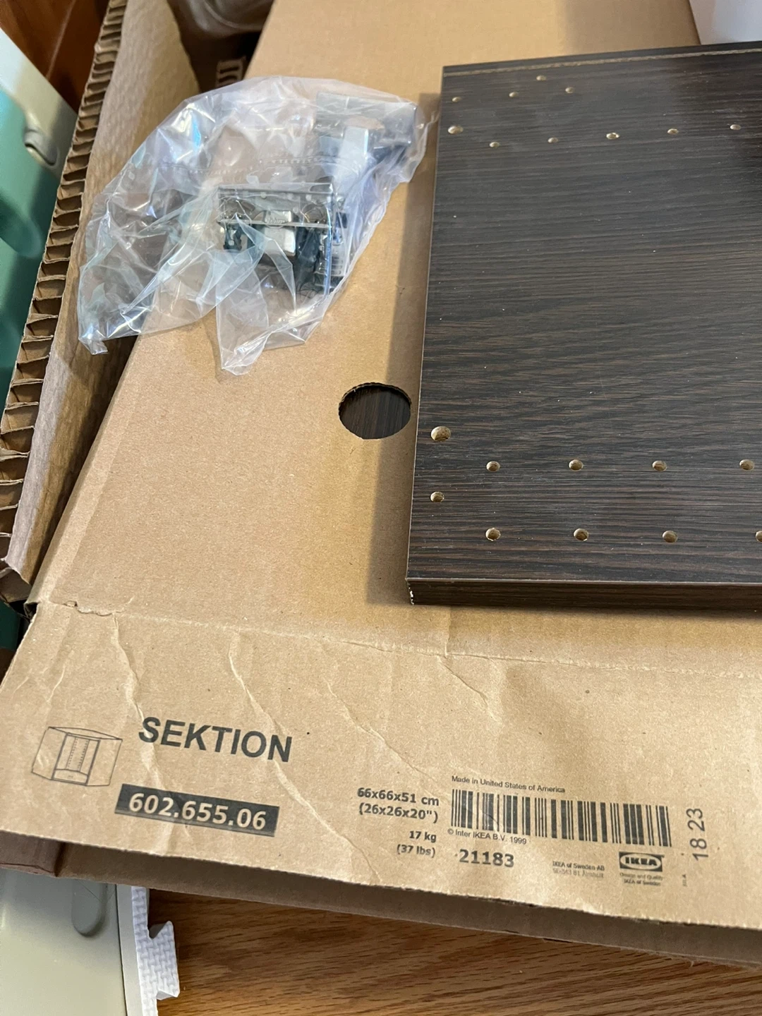 84Selling 2 IKEA SEKTION corner base cabinet. 1 brand new in box and another is opened box to check the colour, comes with all the necessary components. The box has the dimensions listed as 66x66x51 cm (26x26x20 "). This cabinet is perfect for maximizing space in your kitchen. Please see second photo for measurements, colour and weight 1 Open box is 10$ 1 brand new sealed box is 15$ Take both for 20$ Porch pick up only no delivery Leslie & finch