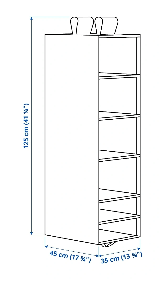 Selling a white IKEA SKUBB hanging organizer. It's in great condition and perfect for adding extra storage to your closet! Dimensions are 125 cm (41 1/4") height x 45 cm (17 3/4") width x 35 cm (13 3/4") depth