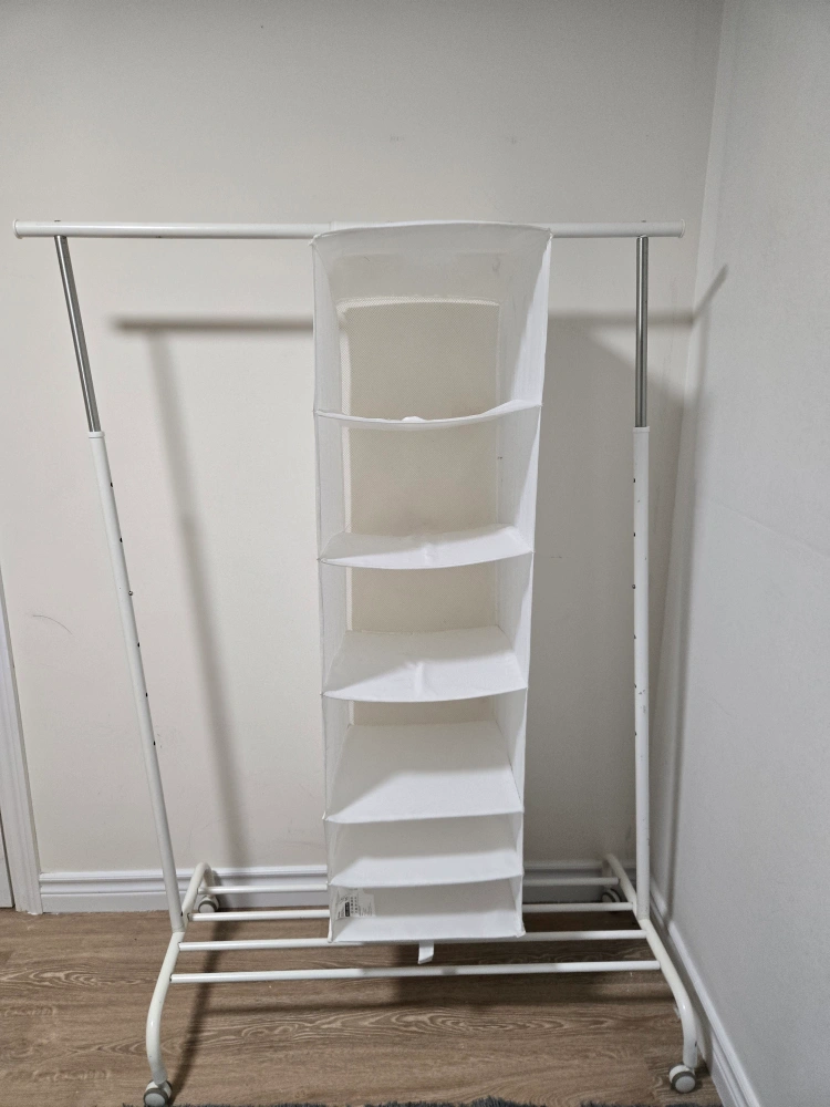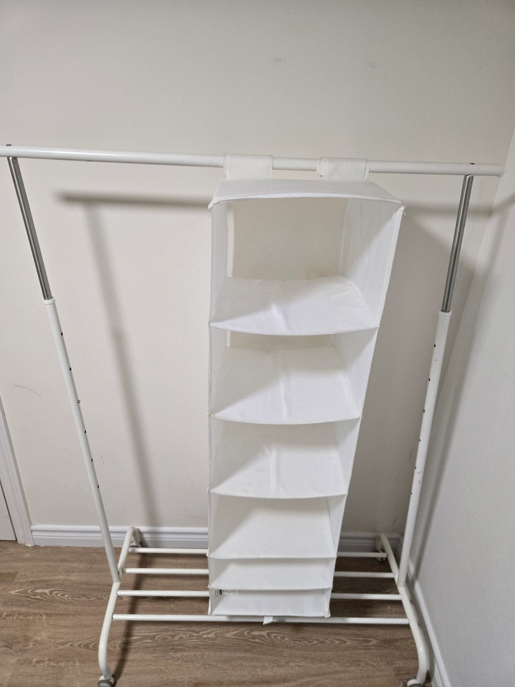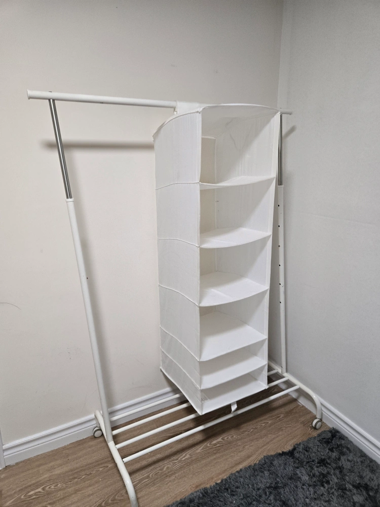 38Selling a white IKEA SKUBB hanging organizer! It's in great condition and perfect for keeping your closet tidy. This organizer has multiple shelves, making it super handy for storing clothes, shoes, or accessories. It's a great space saver!