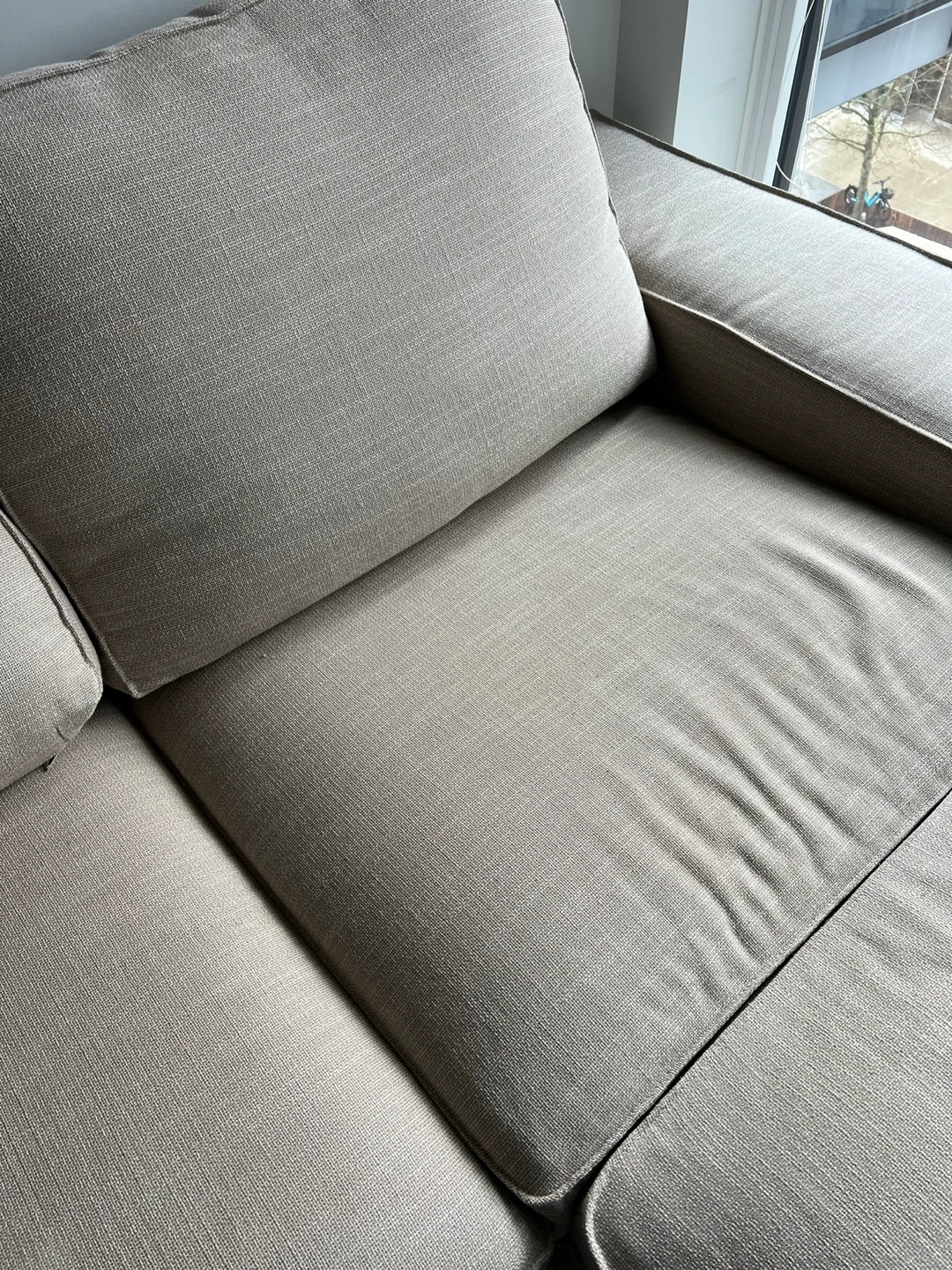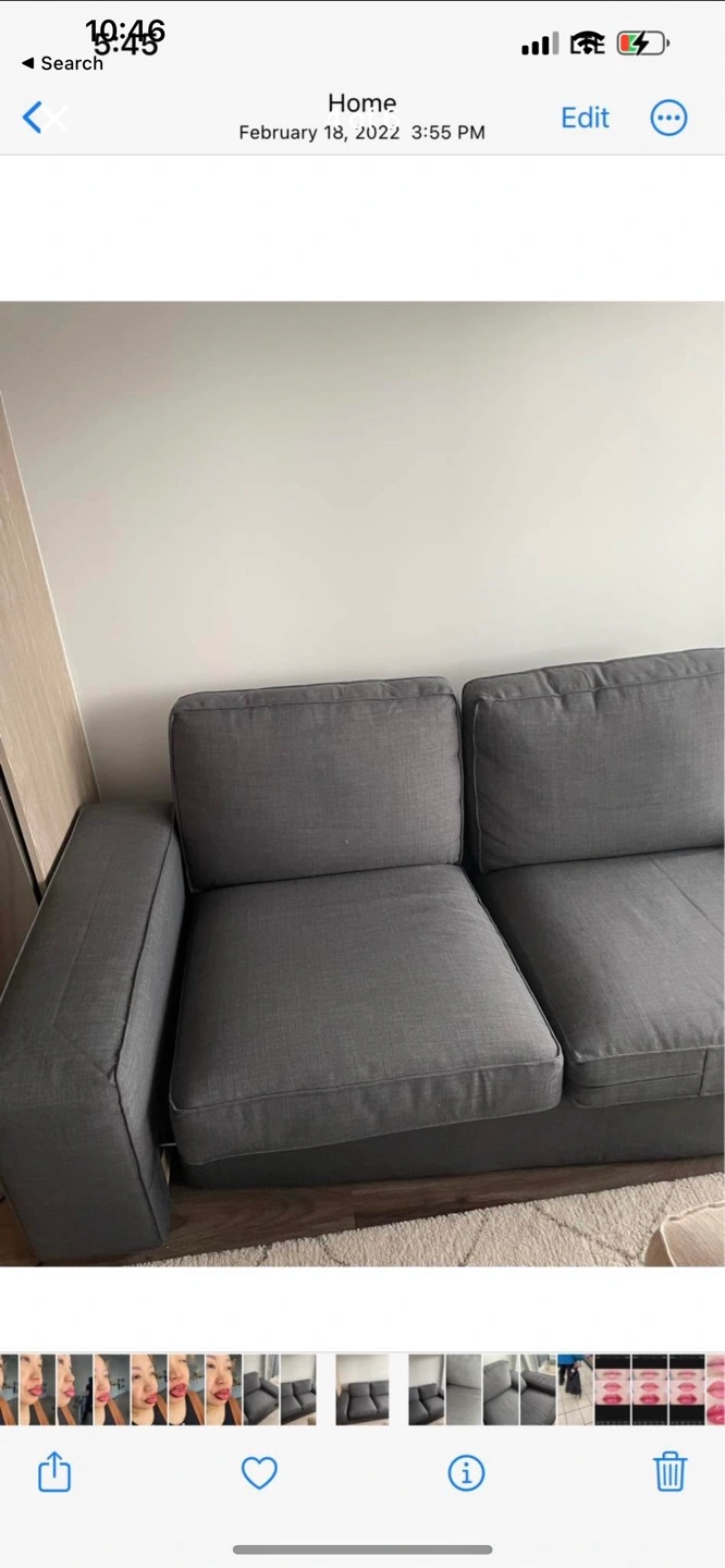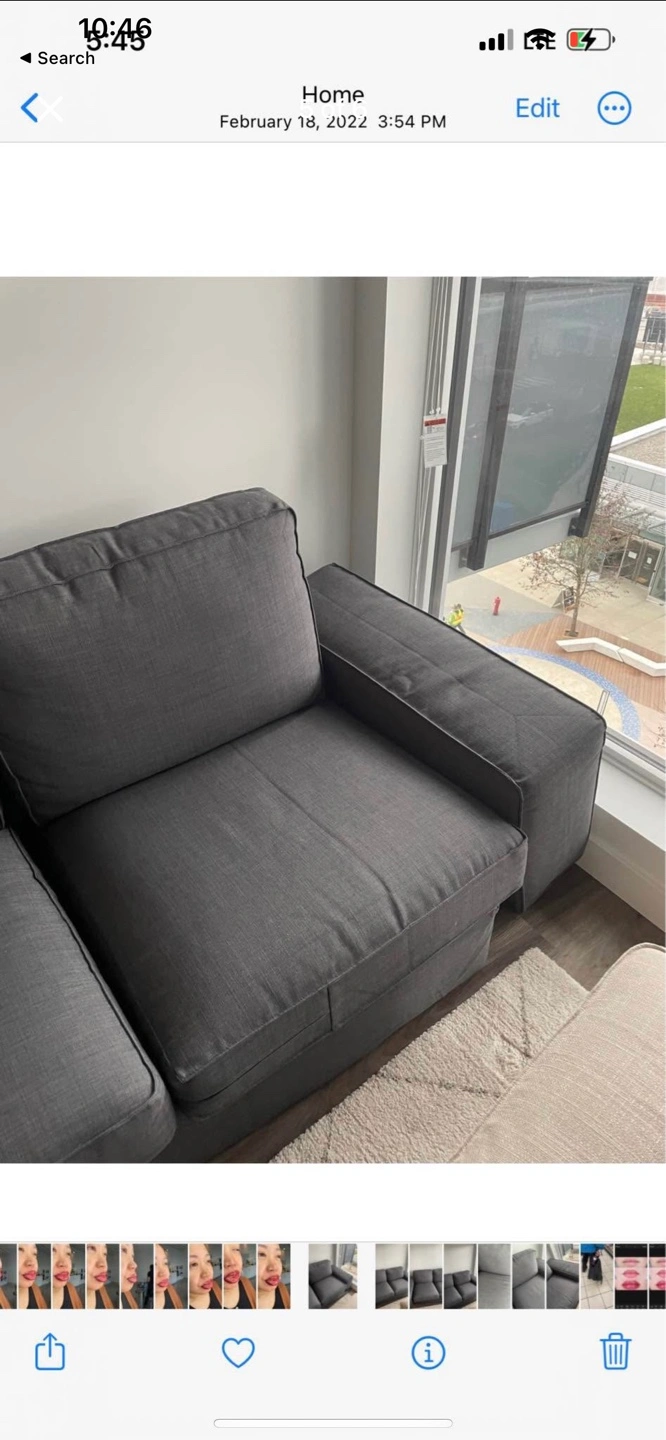 10Comfortable beige fabric sofa. Includes a chaise lounge ottoman. Ottoman has storage space IKEA Love seat with two changeable covers - purchased for $750 IKEA ottoman with storage Purchased for $ 300