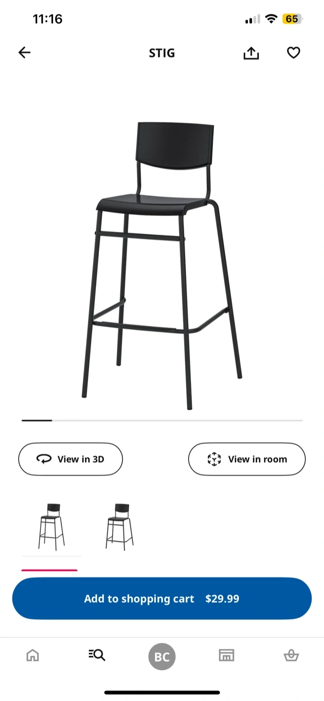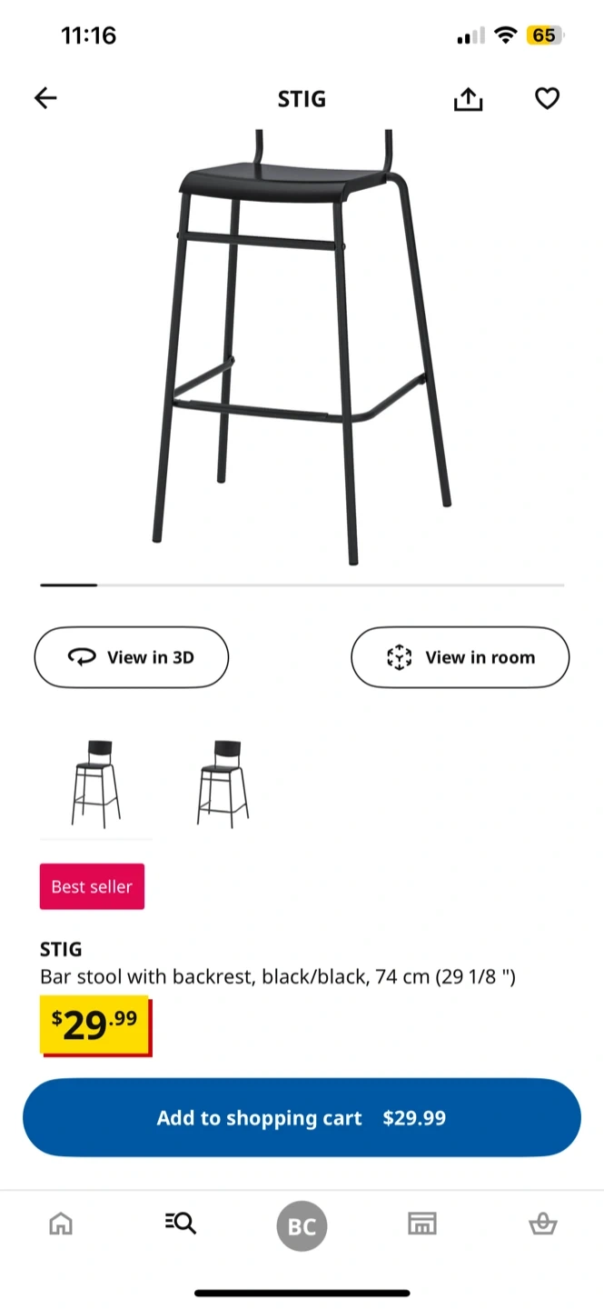 126Selling a black IKEA STIG bar stool with a backrest. It's in great shape and ready for a new home! Height is 74 cm (29 1/8 ") $25 each I have 3 this And 3 small Pick up Mcconachie area