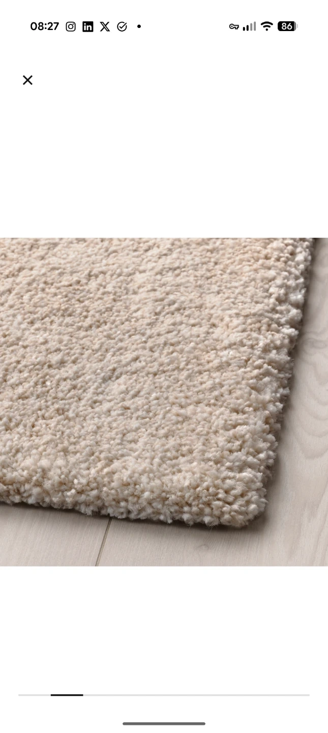 1000+Selling a used IKEA STOENSE rug in off-white. It's a low pile rug, sized at 170x240 cm (5'7" x 7'10"). Originally bought for $149. Used for 2 years...