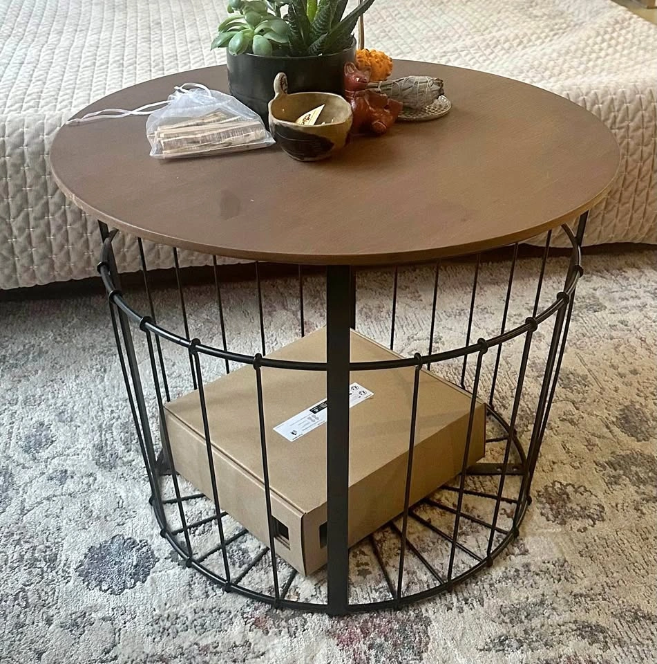 10Storage table, black/pine light brown stained, 60 cm (23 5/8 "). It doubles as storage and comes with fabric you can line the metal with. I never used this and it’s still in the plastic as you can see. It has a minor scratch on top. $70. Pickup St Lawrence Market area.