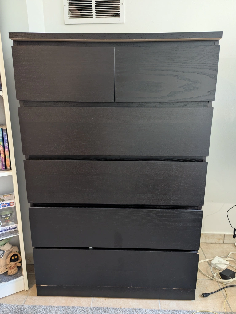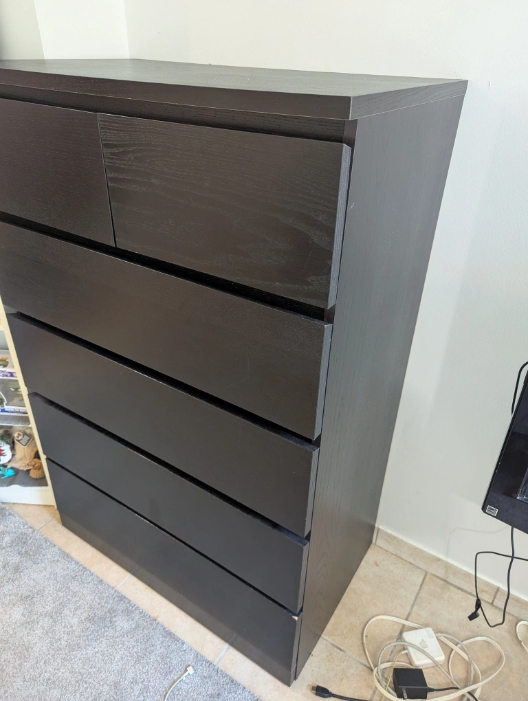 Selling an IKEA STORKLINTA 6-drawer chest, dark brown/oak finish. π Size: 70Γ48Γ120 cm (27 Β½Γ18 β Γ47 ΒΌ") πͺ 2 small drawers on top + 4 large drawers below πͺ Sturdy, modern design with lots of storage space β¨ All drawers work β the bottom one just needs a little extra push to close fully, but it still holds plenty of storage without any issue. π² Price: $70 π Pick up only β no delivery π Location: Near Lappin Ave & St. Clarens Ave, Toronto Great deal for anyone needing solid storage. First come, first served β message if interested!