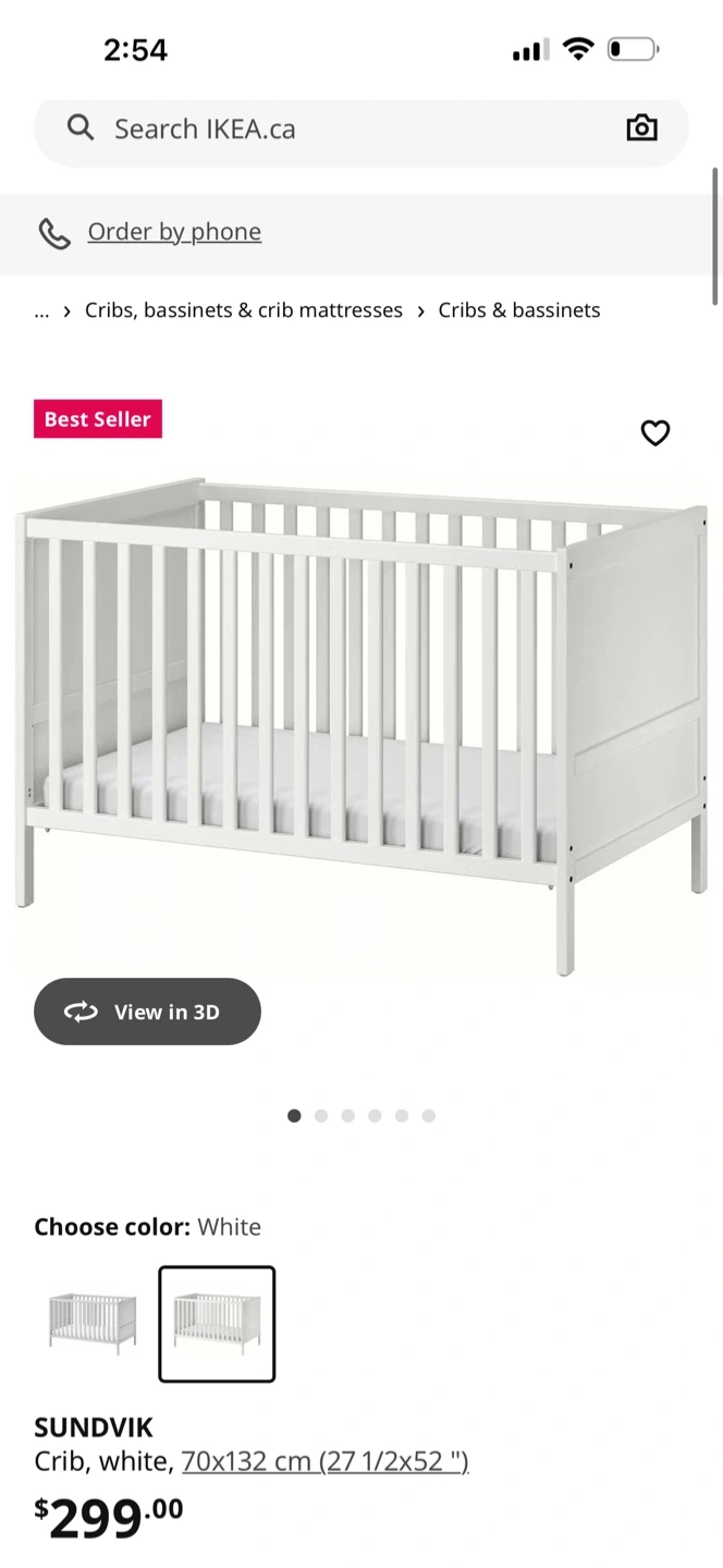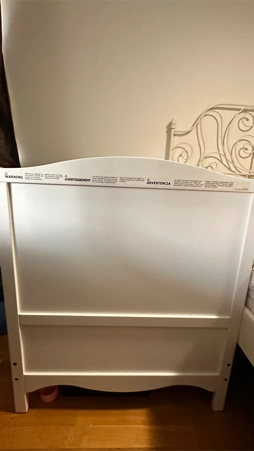 80We’re selling our IKEA SUNDVIK crib in white — a best seller that’s currently $299+tax at IKEA. It’s been gently used and is in great condition. Comes with a clean mattress and cover (no smell, no bugs, and from a smoke-free, pet-free home). Right now, it’s set up as a toddler/day bed since we had it joined to our bed, but the side rail can easily be reattached to turn it back into a full crib. There’s a small dent on one side, purely cosmetic — doesn’t affect safety or sturdiness. 🧸 Details: • IKEA SUNDVIK Crib – White (70x132 cm / 27½x52”) • Sturdy solid wood frame • Converts from crib to toddler/day bed • Includes mattress + fitted cover • Easy to assemble/disassemble 📍 Located near Don Mills & Lawrence, Toronto 💲 Asking $120 or best offer