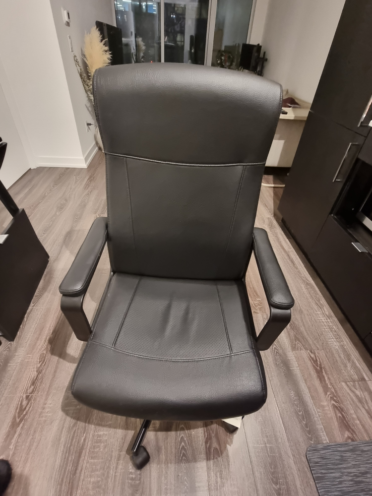 93This swivel chair has adjustable tilt tension that allows you to adjust the resistance to suit your movements and weight. To adjust the tilt tension, turn the knob under the seat to increase or decrease the resistance. You sit comfortably thanks to the seat’s generous size and the high backrest that provides good back support. The seat and the back of the chair are perforated to let air through to your body and make you feel more comfortable during the entire working day. The padded armrests provide good support and comfort for your arms. You sit comfortably since the chair is adjustable in height. The safety casters have a pressure-sensitive brake mechanism that keeps the chair in place when you stand up, and releases automatically when you sit down.