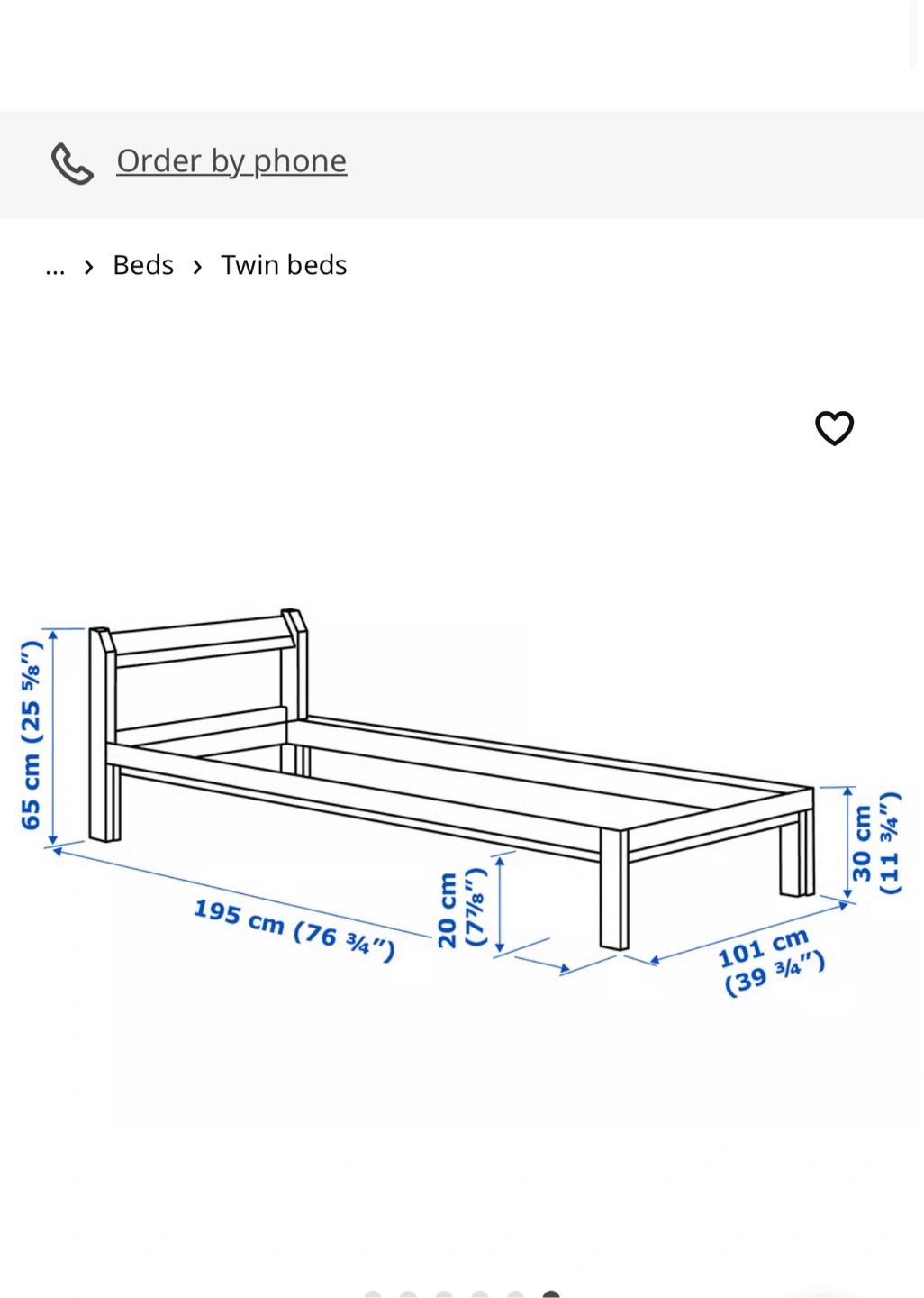 10Selling an Ikea Tarva twin bed frame in pine with mattress . It's in great shape and ready for a new home. Measurements are: - 195 cm (76 3/4") long - 101 cm (39 3/4") wide - 65 cm (25 5/8") high Pet free/smoke free home